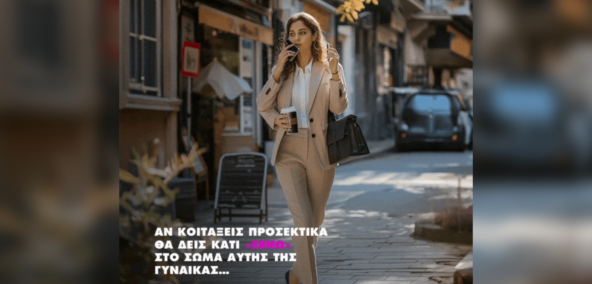 Η καμπάνια βασίζεται στη δύναμη των εικόνων, που δημιουργούνται από AI μηχανές, οι οποίες παρουσιάζουν στιγμιότυπα από την καθημερινότητα μίας γυναίκας. Στην αρχή, οι εικόνες φαίνονται απόλυτα φυσιολογικές – όπως μία γυναίκα που περπατά στους δρόμους της Αθήνας μιλώντας στο κινητό ή μία άλλη που βρίσκεται κολλημένη στην κίνηση. Ωστόσο, με μια πιο προσεκτική ματιά, εντοπίζονται ατέλειες και παραμορφώσεις στο σώμα τους , glitches, που αποκαλύπτουν την τεχνητή προέλευση τους.