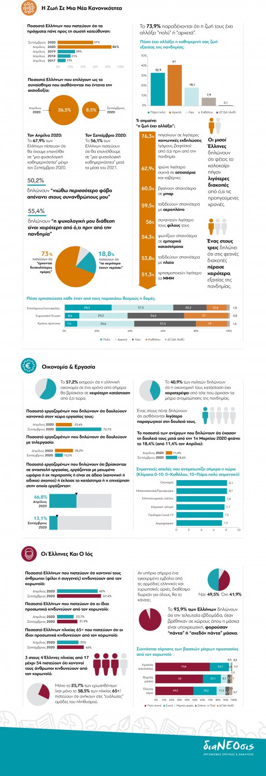 Πέντε μήνες μετά την πρώτη μας έρευνα για τον τρόπο με τον οποίο οι Έλληνες αντιμετωπίζουν την πανδημία του νέου κορωνοϊού, η διαΝΕΟσις επανέρχεται με μια νέα έρευνα κοινής γνώμης.