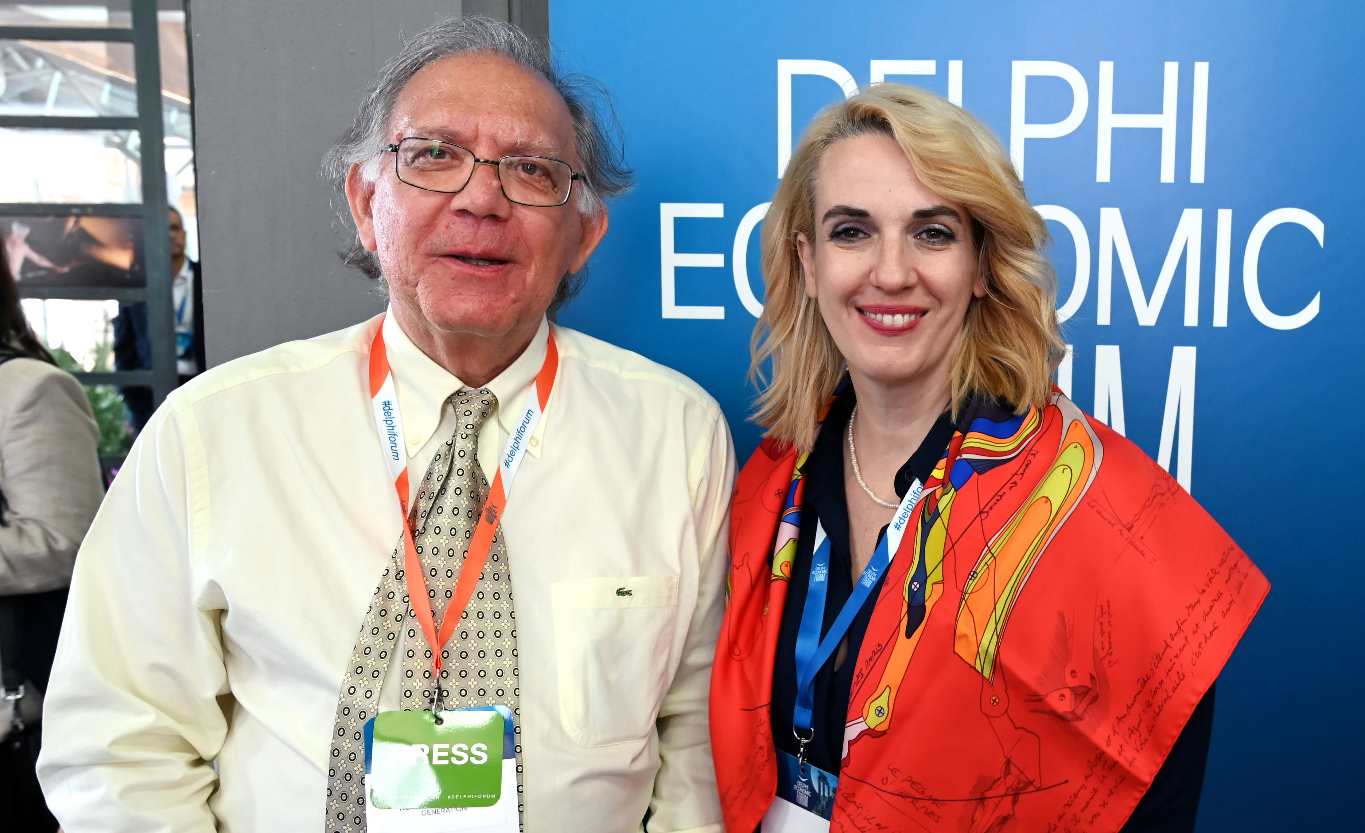 Η Αγγελική Αγγέλη, Chief Portfolio Value Officer Roche Hellas, με τον ιατρικό συντάκτη του Health Next Generation Άρη Μπερζοβίτη.
