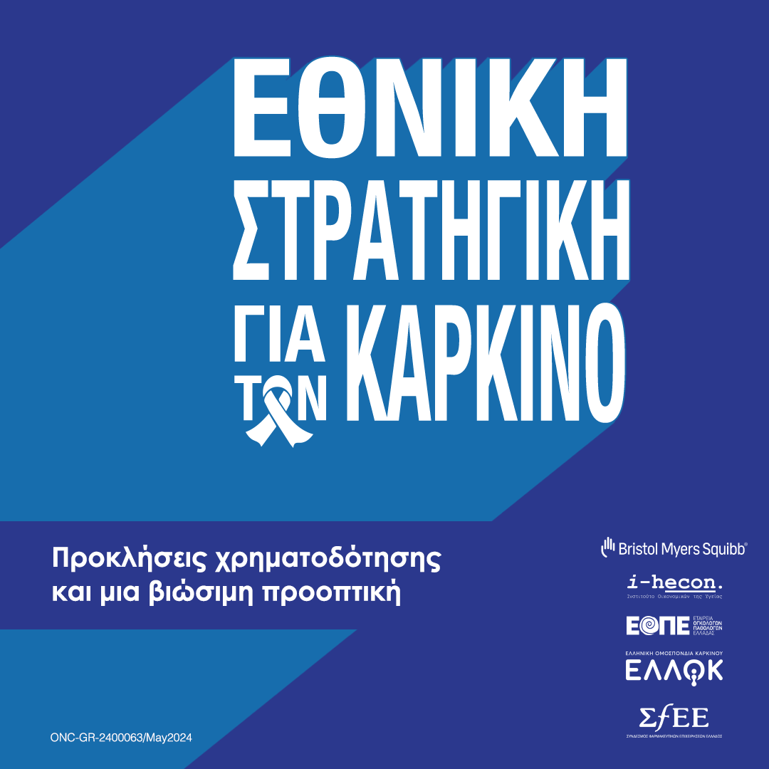 Στην ανάγκη επίσπευσης της ανάπτυξης και εφαρμογής ενός Εθνικού Στρατηγικού Σχεδίου για τον Καρκίνο, καθώς και της διασφάλισης επαρκούς χρηματοδότησης όλων των σταδίων της ογκολογικής φροντίδας επικεντρώθηκε η συνέντευξη Τύπου που διοργανώθηκε στις 19 Ιουνίου, με πρωτοβουλία της βιοφαρμακευτικής εταιρείας Bristol Myers Squibb, σε συνεργασία με το Ινστιτούτο Οικονομικών της Υγείας και με τη συμμετοχή της Εταιρείας Ογκολόγων-Παθολόγων Ελλάδας (Ε.Ο.Π.Ε.), της Ελληνικής Ομοσπονδίας Καρκίνου (ΕΛΛ.Ο.Κ.) και του Συνδέσμου Φαρμακευτικών Επιχειρήσεων Ελλάδας (Σ.Φ.Ε.Ε.).