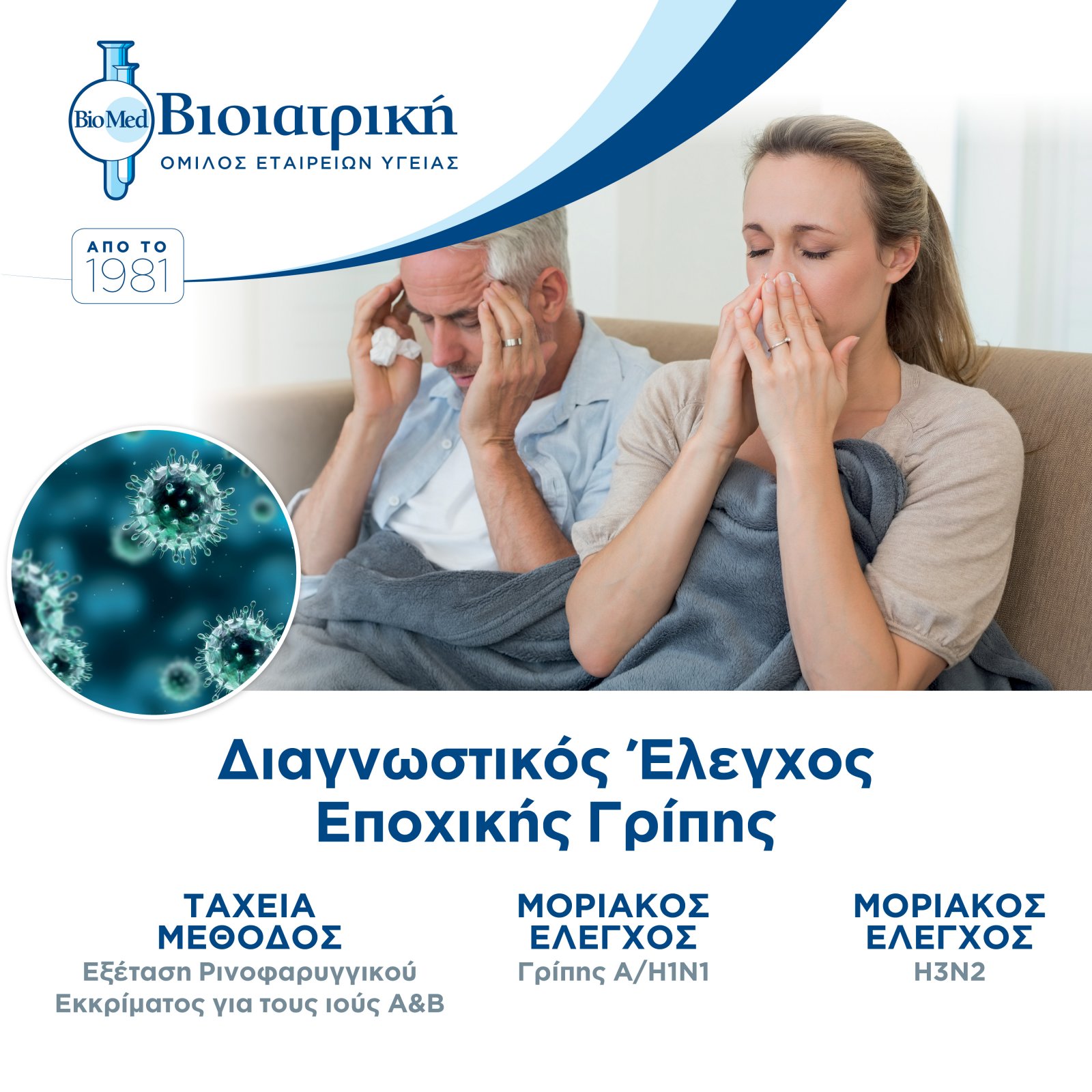 Ο Όμιλος Εταιρειών Υγείας ΒΙΟΙΑΤΡΙΚΗ, προσφέρει πακέτο εξετάσεων για τον έλεγχο της εποχικής γρίπης, σε ειδικές προνομιακές τιμές.