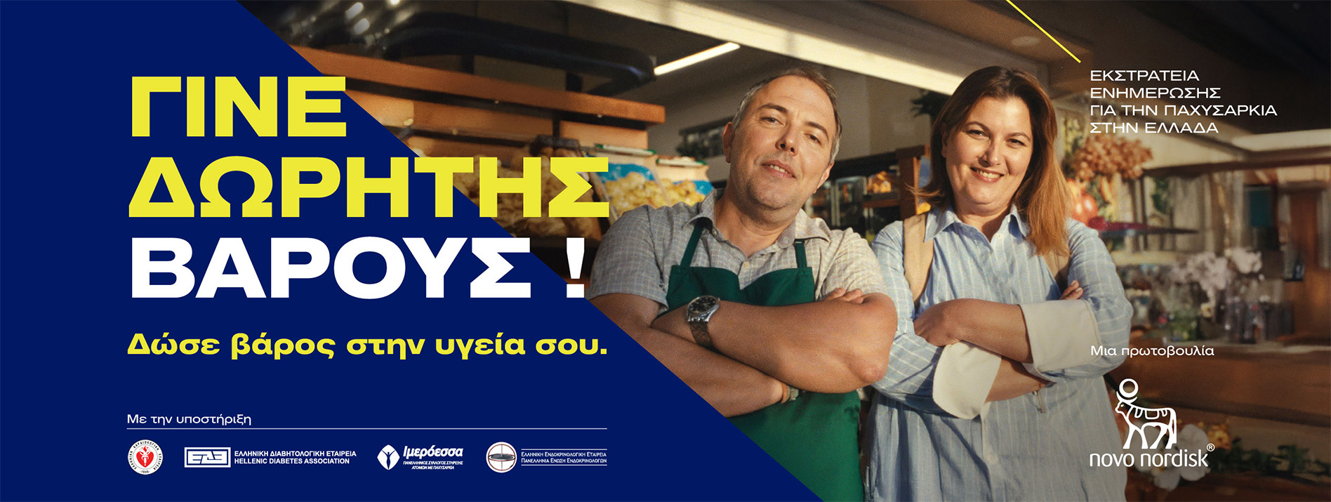 Η εκστρατεία, μια πρωτοβουλία της Novo Nordisk Hellas, τελεί υπό την αιγίδα του Πανελληνίου Συλλόγου Στήριξης Ατόμων με Παχυσαρκία «Ιμερόεσσα», καθώς και της Ελληνικής Διαβητολογικής Εταιρείας, της Ελληνικής Ενδοκρινολογικής Εταιρείας και της Ελληνικής Καρδιολογικής Εταιρείας.
