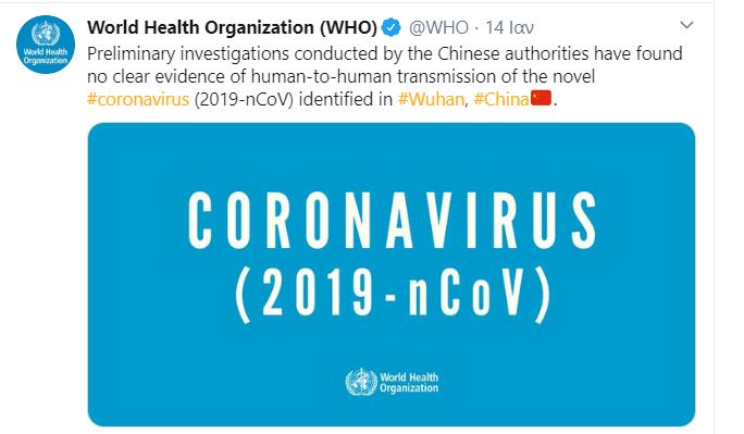 Η ανακοίνωση του ΠΟΥ στο twitter