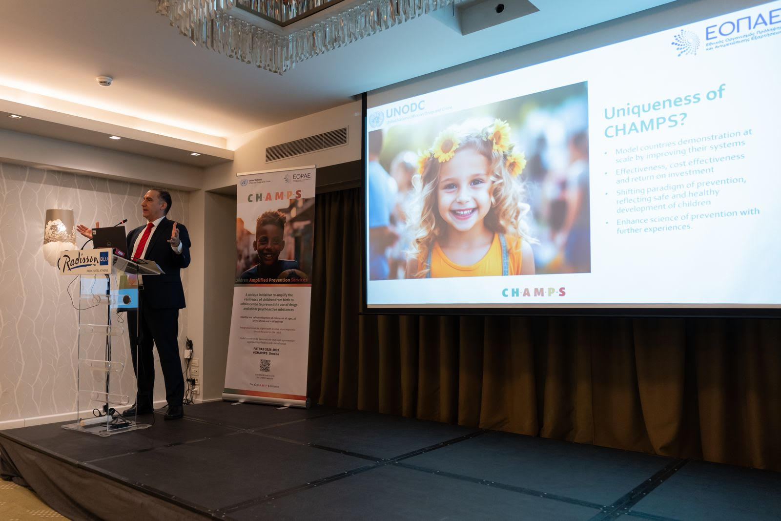Με επιτυχία ξεκίνησε στην Ελλάδα το διεθνές πρόγραμμα CHAMPS (Children Amplified Prevention Services) του ΟΗΕ, υπό την αιγίδα του Υπουργείου Υγείας και του Γραφείου των Ηνωμένων Εθνών για τα Ναρκωτικά και το Έγκλημα (UNODC), με συντονιστή φορέα τον Εθνικό Οργανισμό Πρόληψης και Αντιμετώπισης Εξαρτήσεων (ΕΟΠΑΕ). Πρόκειται για μια καινοτόμο διεθνή πρωτοβουλία συστημικών παρεμβάσεων πρόληψης, που στοχεύει στην ενίσχυση των επιστημονικά τεκμηριωμένων παρεμβάσεων για παιδιά και εφήβους, από τη γέννηση έως και την ενηλικίωση, μέσα από ολιστική προσέγγιση, διατομεακή συνεργασία και ανταλλαγή επιστημονικών γνώσεων και καλών πρακτικών μεταξύ των κρατών μελών.