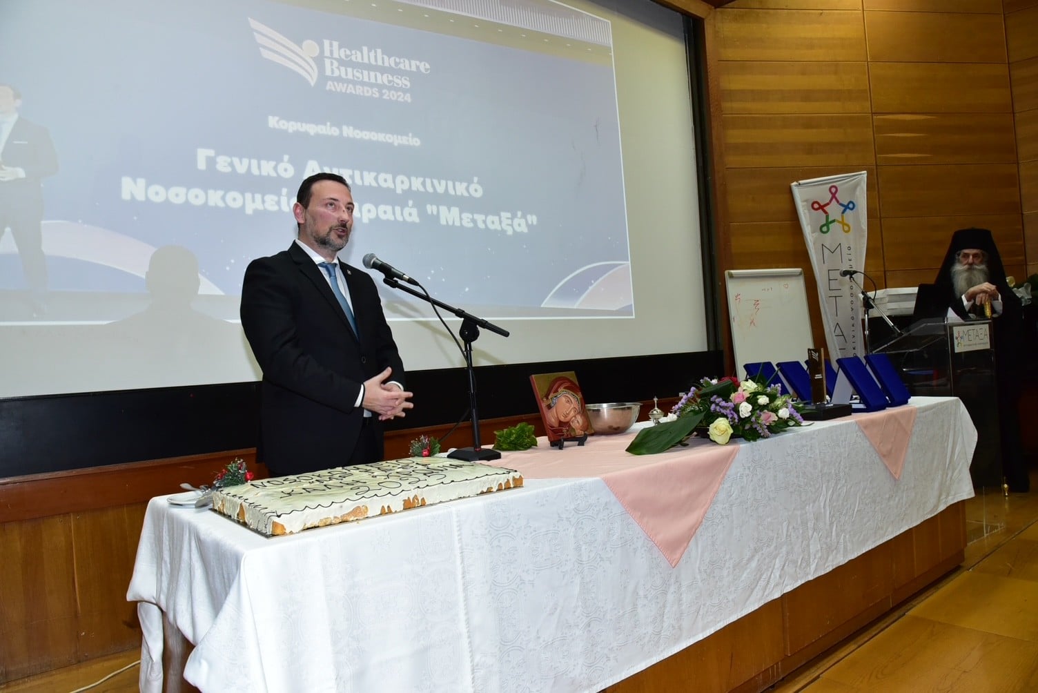 Στη συνέχεια, ο Διοικητής του Νοσοκομείου Μεταξά προχώρησε σε μια συνοπτική παρουσίαση του έργου που υλοποιήθηκε το 2024, επιστέγασμα την κατάκτηση του τίτλου του κορυφαίου νοσοκομείου της χρονιάς στα Healthcare & Business Awards 2024, ευχαριστώντας ιδιαίτερα για τη στήριξη την ηγεσία τόσο της 2ης Υγειονομικής Περιφέρειας Πειραιά & Αιγαίου όσο και του Υπουργείου Υγείας.
