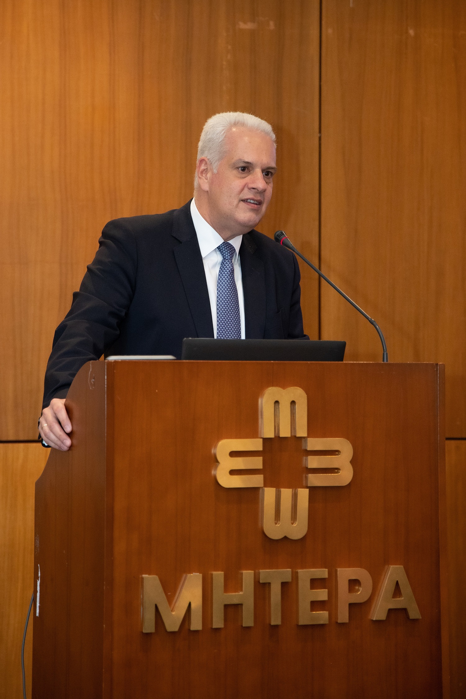 Ο κ. Σταύρος Σουγιουλτζής, Επιχειρησιακός Διευθυντής του ΜΗΤΕΡΑ καλωσορίζει τον Υπουργό Ψηφιακής Διακυβέρνησης κ. Δημήτρη Παπαστεργίου