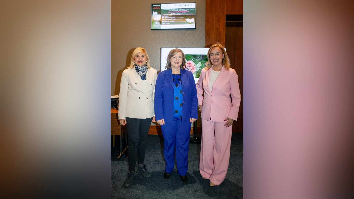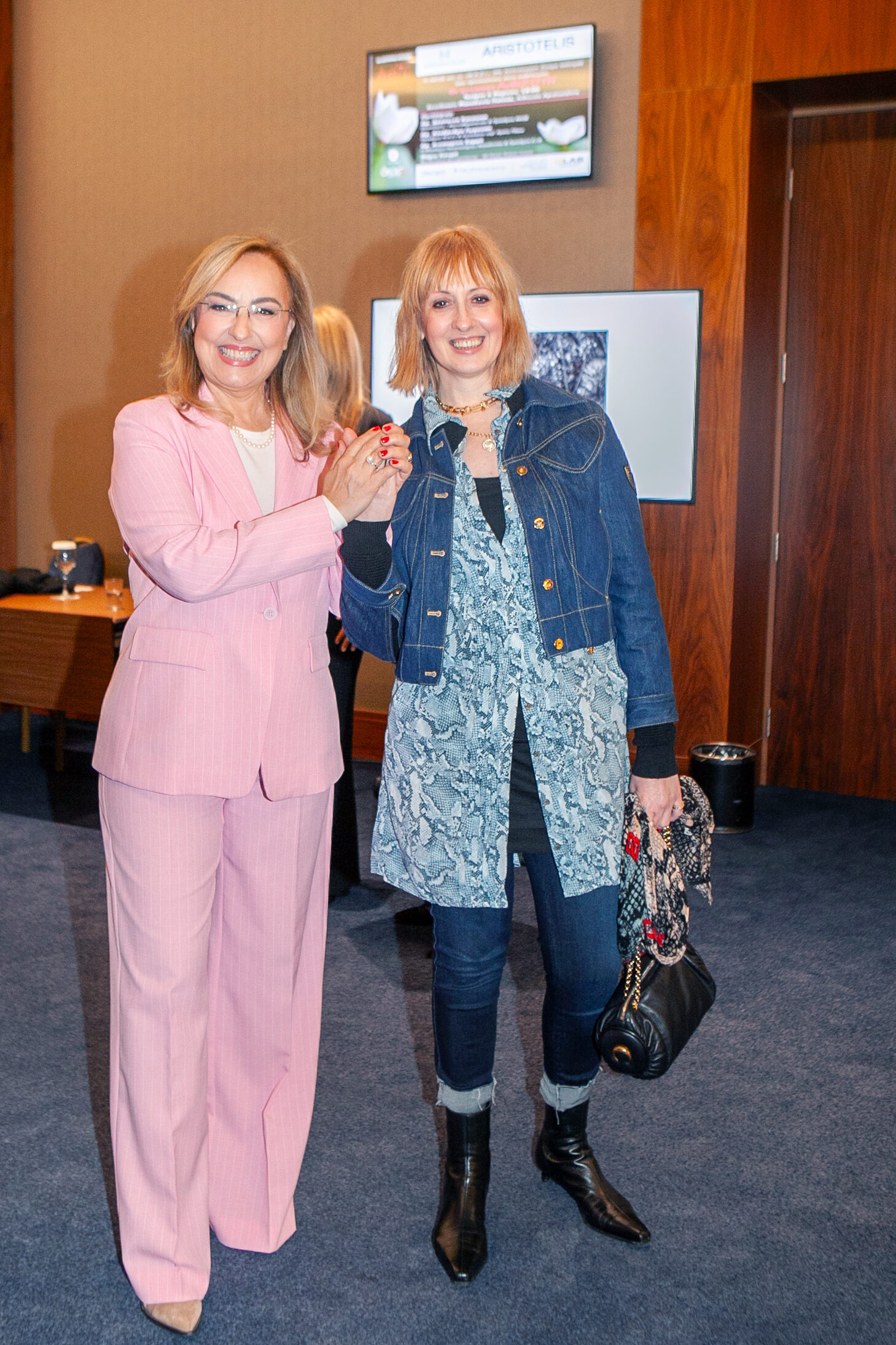 Η καθηγήτρια του Πανεπιστημίου Μακεδονίας Αικατερίνη Σαρρή και η Πρόεδρος της Λέσχης Lions Θεσσαλονίκης «Υπατία» Στίβη Σιωζοπούλου.