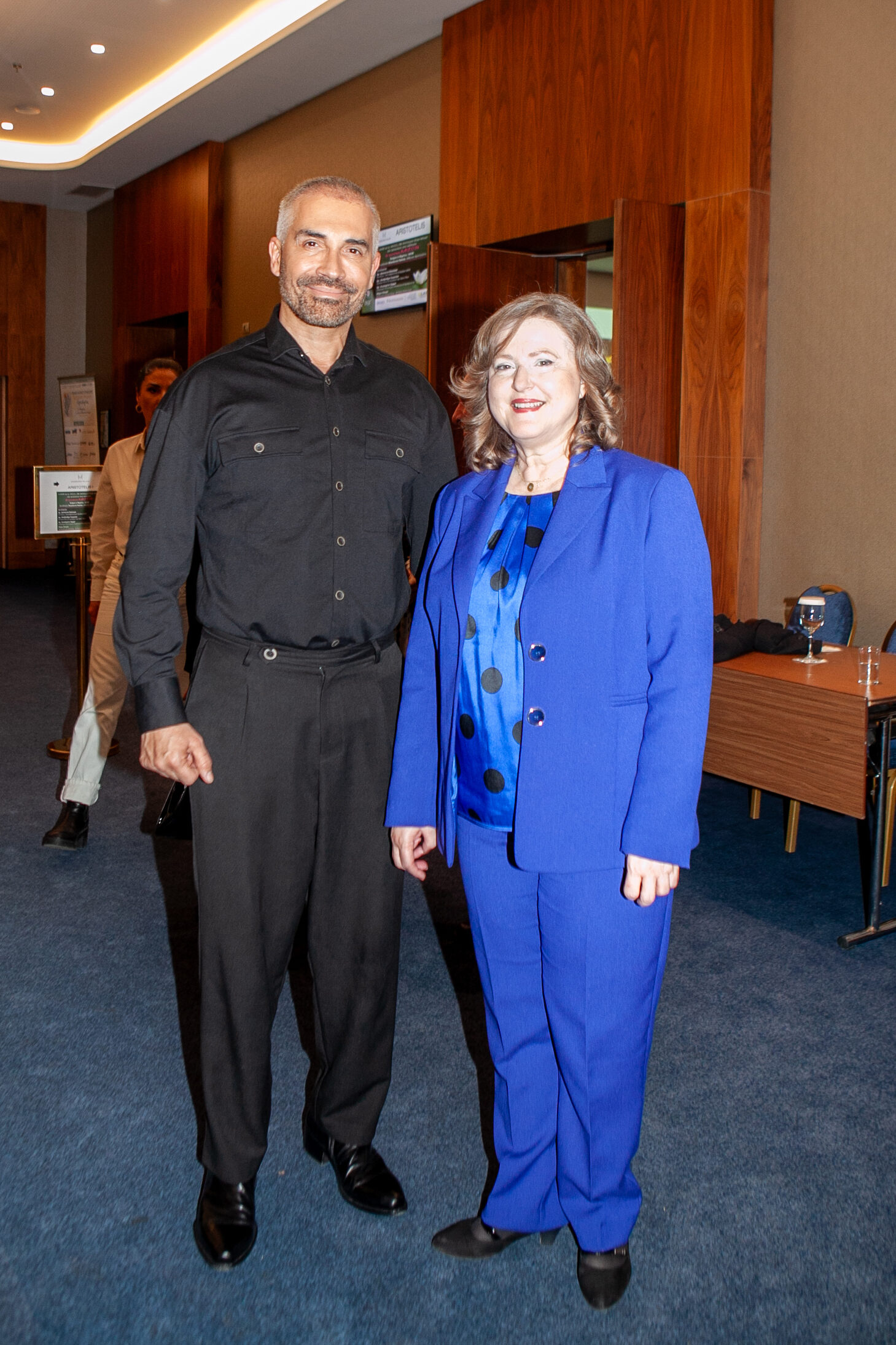 Η Πρόεδρος της ΑΚΟΣ Δέσποινα Κατσώχη και ο εικαστικός Χρήστος Χατζηβασιλείου.