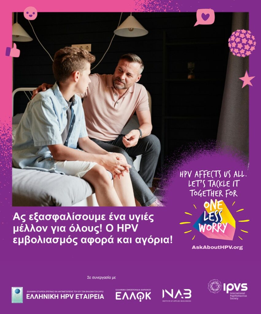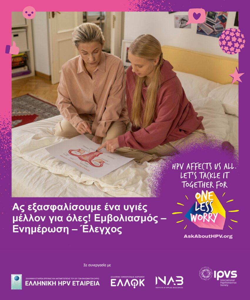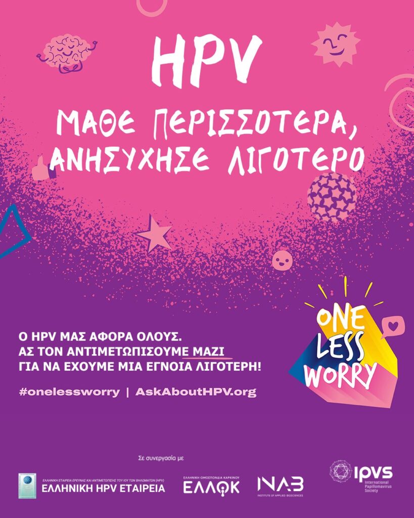Αυτά τα συγκλονιστικά στοιχεία αναδεικνύει, μεταξύ άλλων, η διεθνής καμπάνια «One Less Worry» («Μια Έγνοια Λιγότερη»), στο πλαίσιο της οποίας εντάσσεται η νέα Ελληνική Εκστρατεία Ενημέρωσης για τον HPV με κεντρικό μήνυμα: «Better safe than sorry!” («Καλύτερα ασφαλής, παρά να μετανιώσεις!») και στόχο την έγκυρη ενημέρωση και την πρόληψη από παθήσεις που σχετίζονται με τον HPV.