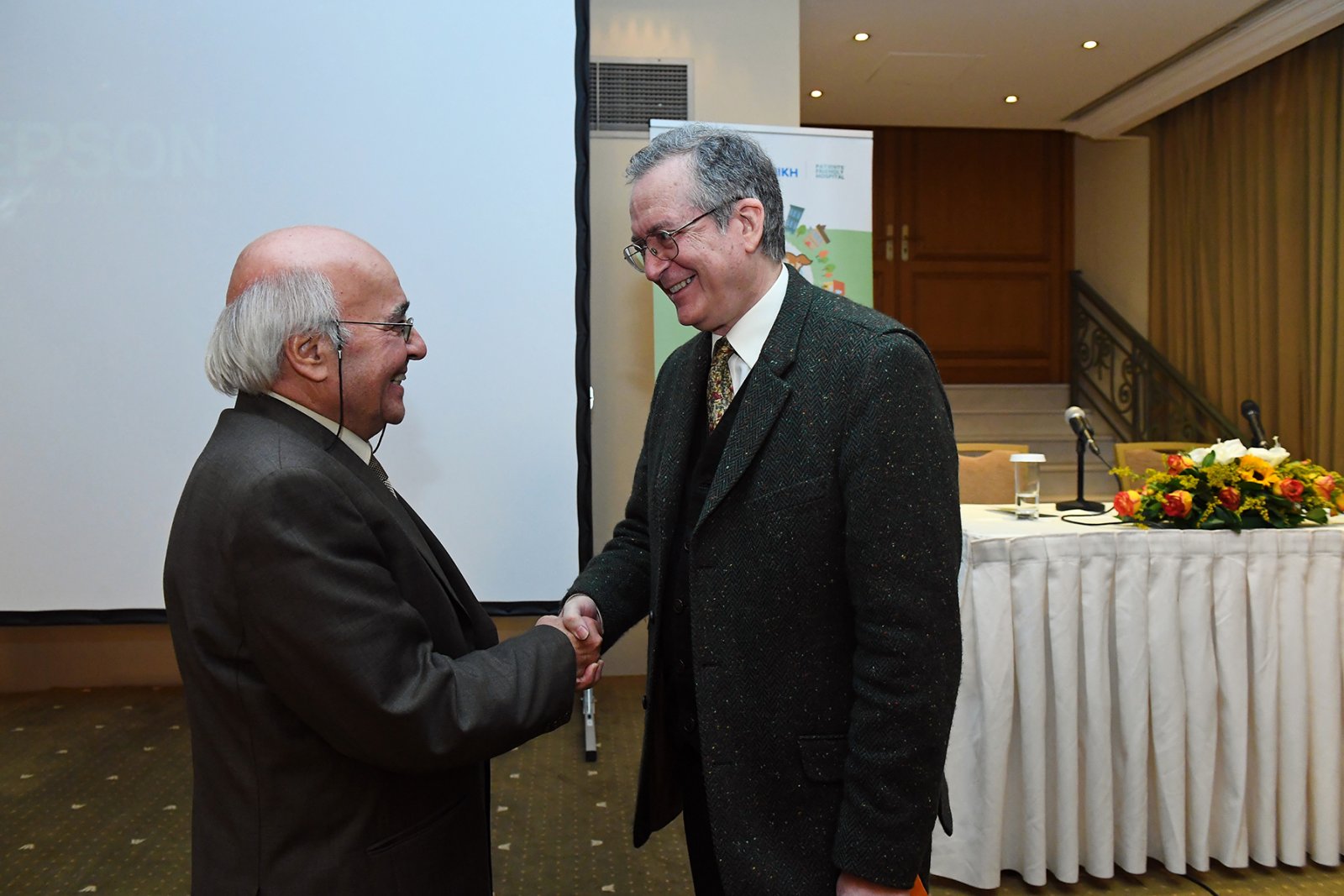 Από αριστερά: ο κος Μιχαήλ Σούτης, Τομεάρχης Παιδιατρικού Τομέα Ευρωκλινικής Παίδων με τον κο Ευγένιο Τριβιζά, Εγκληματολόγο – Συγγραφέα