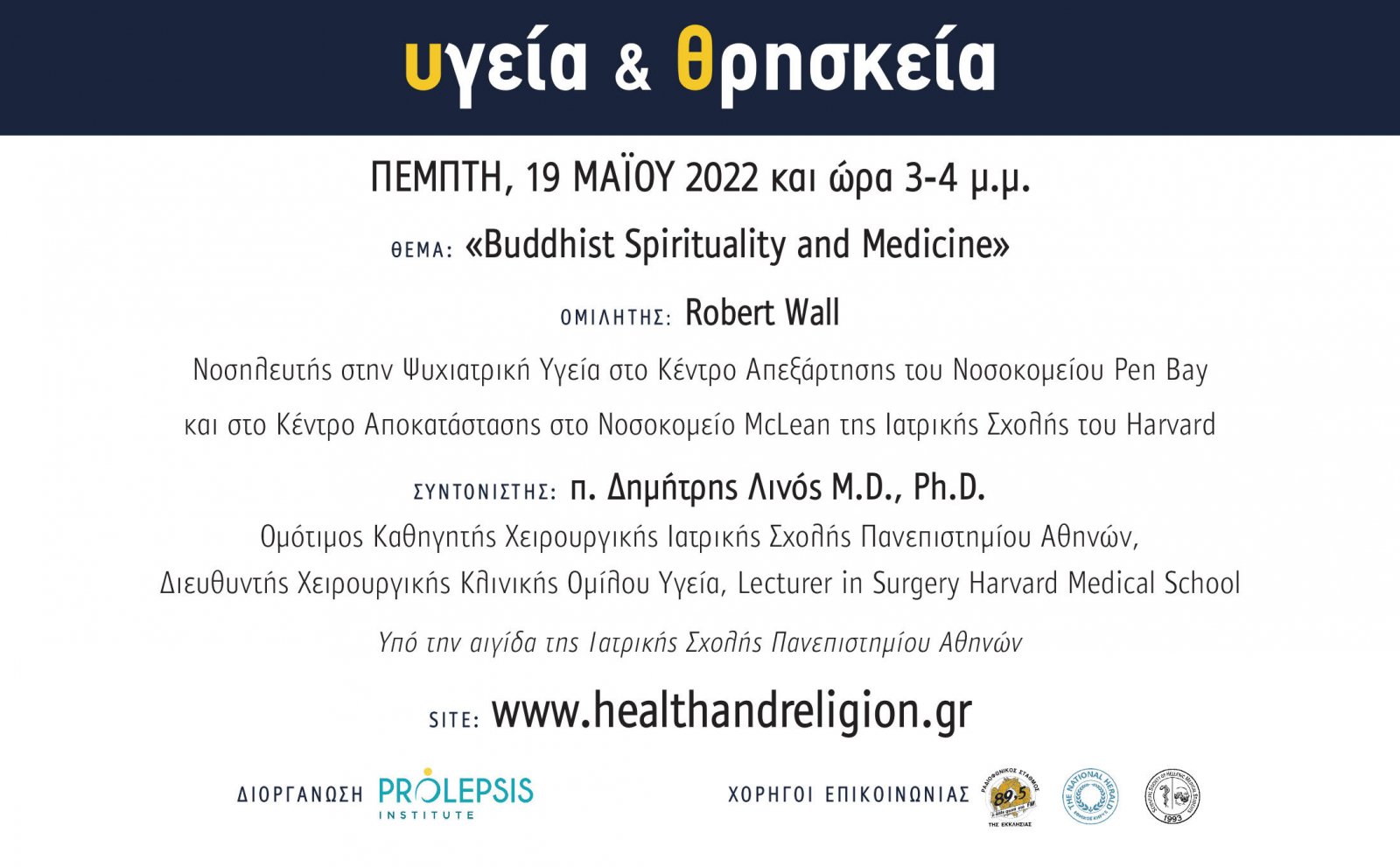 Ενημερωθείτε για την πρωτοβουλία και παρακολουθήστε ζωντανά τις ομιλίες στο www.healthandreligion.gr.