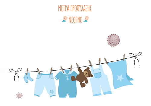 - Σε περίπτωση που ο γονιός εργάζεται ή βγαίνει για τα οικιακά ψώνια είναι σημαντικό να ακολουθεί καλός αερισμός, σε εξωτερικό περιβάλλον, στα ρούχα που φοράει ερχόμενος από έξω.