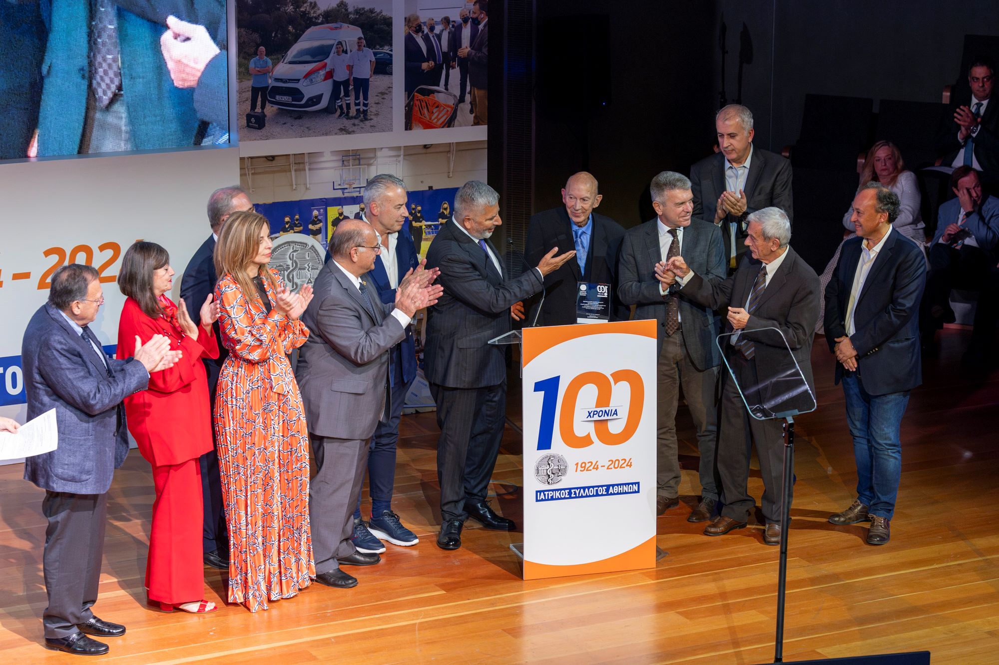 Σε συγκινητική ατμόσφαιρα πραγματοποιήθηκε η εκδήλωση για τον εορτασμό των 100 χρόνων του Ιατρικού Συλλόγου Αθηνών, την Τετάρτη 30 Οκτωβρίου 2024, στο Ωδείο Αθηνών, με τη συμμετοχή εκατοντάδων ιατρών, εκπροσώπων της πολιτικής ηγεσίας της χώρας, της Ακαδημαϊκής κοινότητας, των ιατρικών Φορέων από όλο τον κόσμο, των Επιστημονικών Εταιριών, του Κοινοβουλίου και της Τοπικής Αυτοδιοίκησης.