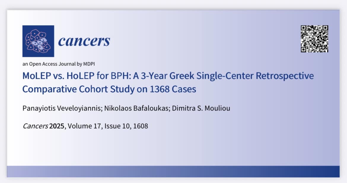 Η μελέτη αφορά περισσότερους από 1.000 ασθενείς που αντιμετωπίστηκαν για Καλοήθη Υπερπλασία του Προστάτη με τη μέθοδο HoLEP (Holmium Laser Enucleation of the Prostate), αναδεικνύοντας τη μεγάλη κλινική εμπειρία της Κλινικής και την αποτελεσματικότητα της προσέγγισης σε πραγματικές συνθήκες.