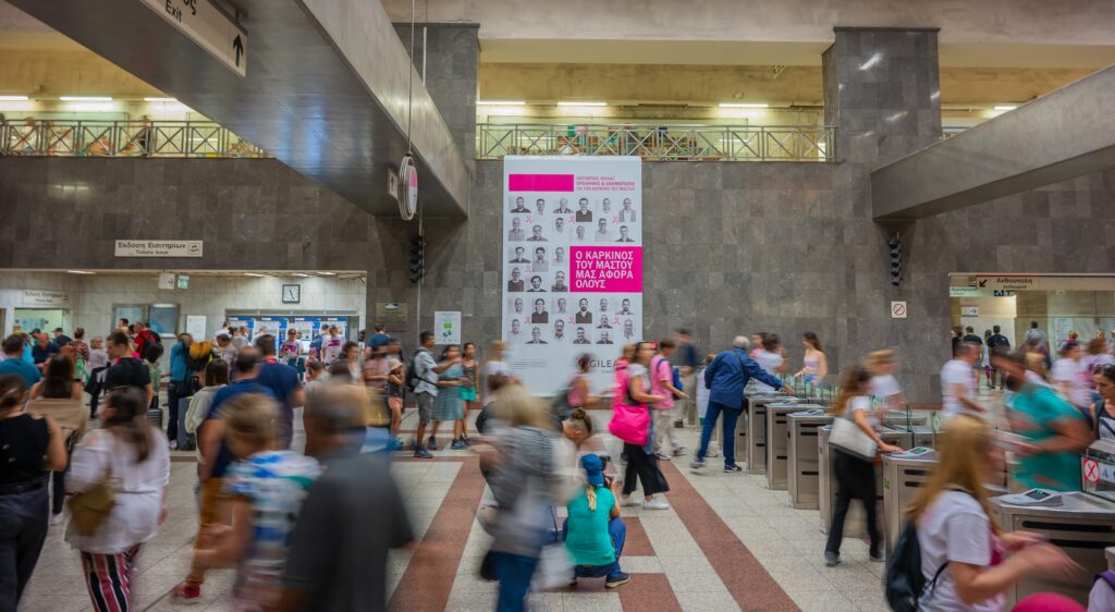 Η φετινή καμπάνια της εταιρείας «ντύνει» λοιπόν τα μέσα μαζικής μεταφοράς και τον σταθμό του μετρό Συντάγματος, επικοινωνώντας το πολύ εύστοχο μήνυμα πως ο καρκίνος του μαστού αφορά ΟΛΟΥΣ! Τόσο τις γυναίκες όσο και τους άνδρες. Και πως η αποτελεσματική αντιμετώπισή του περνά μέσα από την ενημέρωση όλων, την πρόληψη και την έγκαιρη διάγνωσή του.