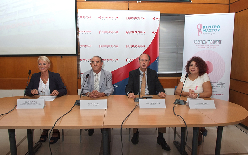 Το Μetropolitan General δημιούργησε ένα νέο Κέντρο Μαστού στο οποίο προσφέρεται η πιο σύγχρονη και ολιστική φροντίδα, με ολοκληρωμένες υπηρεσίες υψηλού επιπέδου που αφορούν την υγεία του μαστού, από το στάδιο της πρόληψης και της έγκαιρης διάγνωσης, έως τη θεραπεία και την αποκατάσταση. Επίσης, είναι το μοναδικό θεραπευτήριο στην Ελλάδα που διαθέτει το κορυφαίο παγκοσμίως μαστογραφικό σύστημα Mammomat Revelation. Το σύστημα διαθέτει πρωτοποριακά τεχνικά χαρακτηριστικά που προσφέρουν τριπλάσια διαγνωστική ακρίβεια σε σχέση με τα συμβατικά, ενώ η τεχνολογία PRIME που διαθέτει επιτρέπει τη μείωση της δόσης της ακτινοβολίας έως 30% με την καλύτερη δυνατή εικόνα.