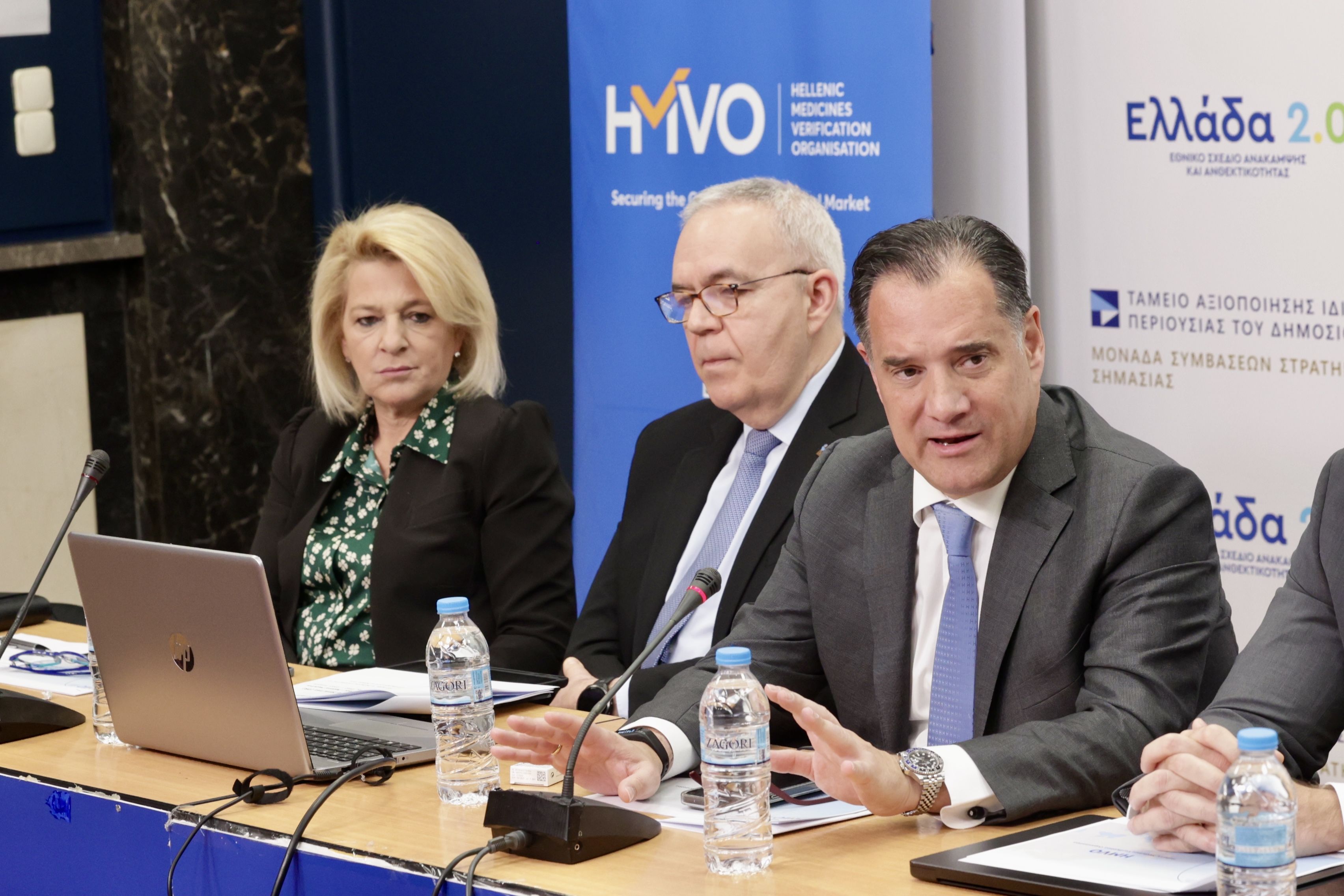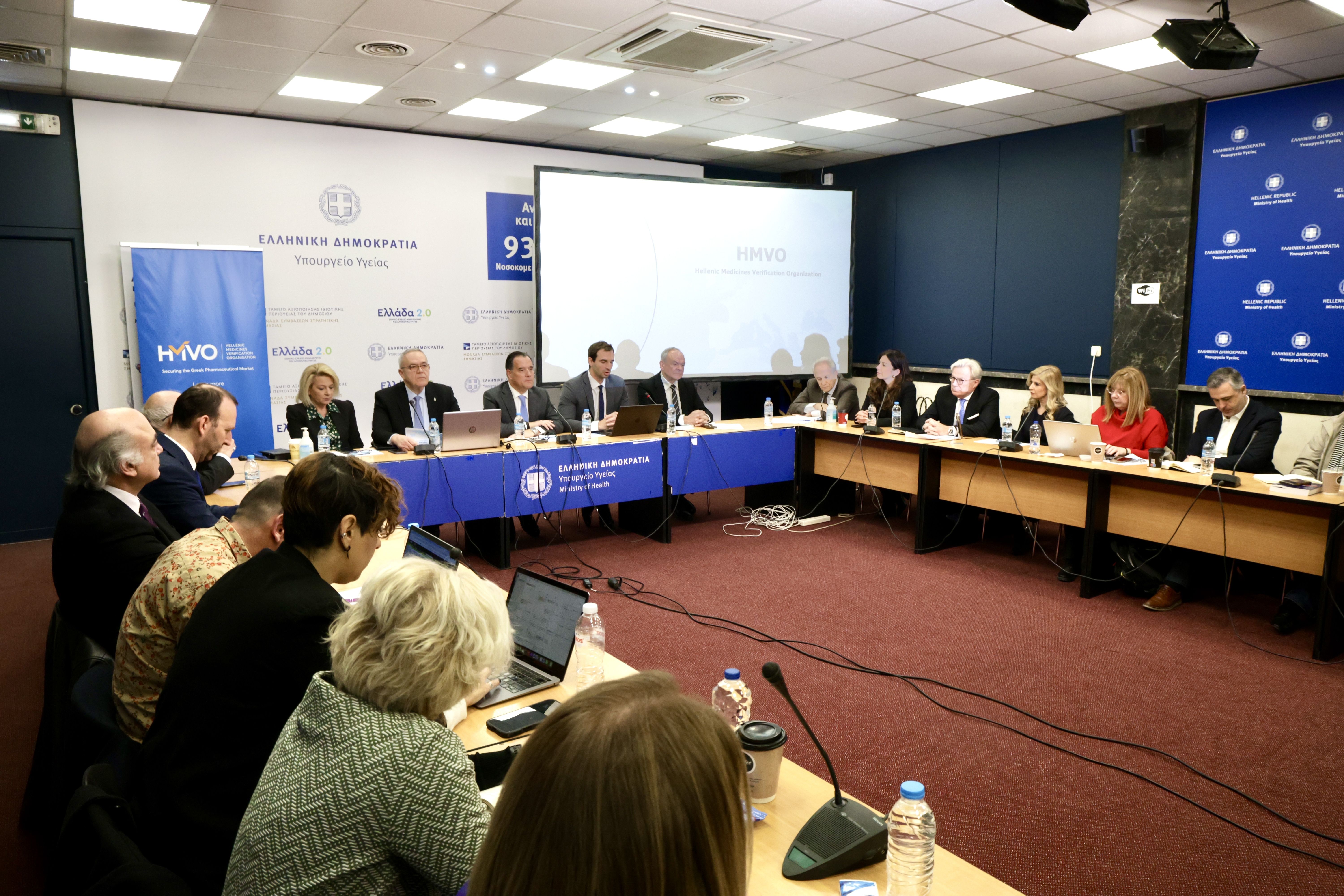 Ο Υπουργός Υγείας Άδωνις Γεωργιάδης παραχώρησε την Τρίτη 11 Φεβρουαρίου 2025, συνέντευξη τύπου για την έναρξη λειτουργίας του Ελληνικού Οργανισμού Επαλήθευσης Φαρμάκων (HMVO), η πλήρης λειτουργία του οποίου ξεκίνησε στις 9 Φεβρουαρίου 2025. Στην παρουσίαση συμμετείχαν τα μέλη του ΔΣ του HMVO, που αποτελείται από τον Σύνδεσμο Φαρμακευτικών Επιχειρήσεων Ελλάδος (Σ.Φ.Ε.Ε.), την Πανελλήνια Ένωση Φαρμακοβιομηχανίας (Π.Ε.Φ.), τον Πανελλήνιο Φαρμακευτικό Σύλλογο (Π.Φ.Σ.), το PhaRMA Innovation Forum (P.I.F.) και τον Σύλλογο Αντιπροσώπων Φαρμακευτικών Ειδών και Ειδικοτήτων (Σ.Α.Φ.Ε.Ε.), ο Γενικός Γραμματέας Στρατηγικού Σχεδιασμού Άρης Αγγελής, ο Πρόεδρος του ΕΟΦ, Ευάγγελος Μανωλόπουλος και η Διοικήτρια του ΕΟΠΥΥ, Θεανώ Καρποδίνη.