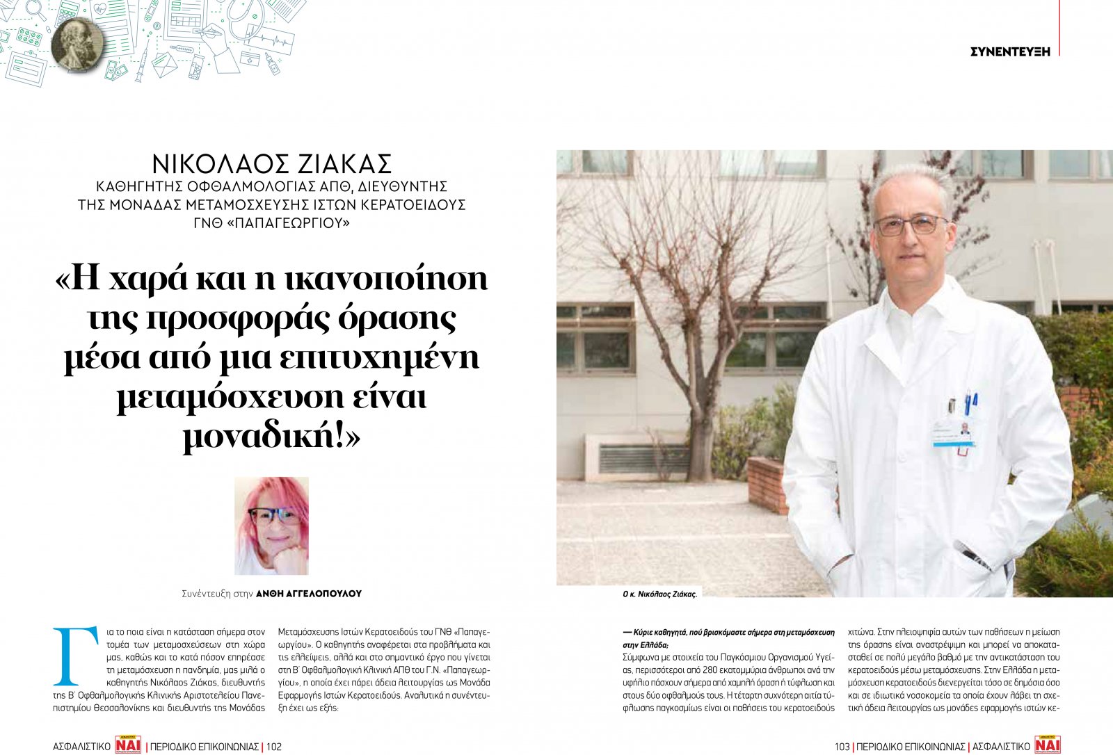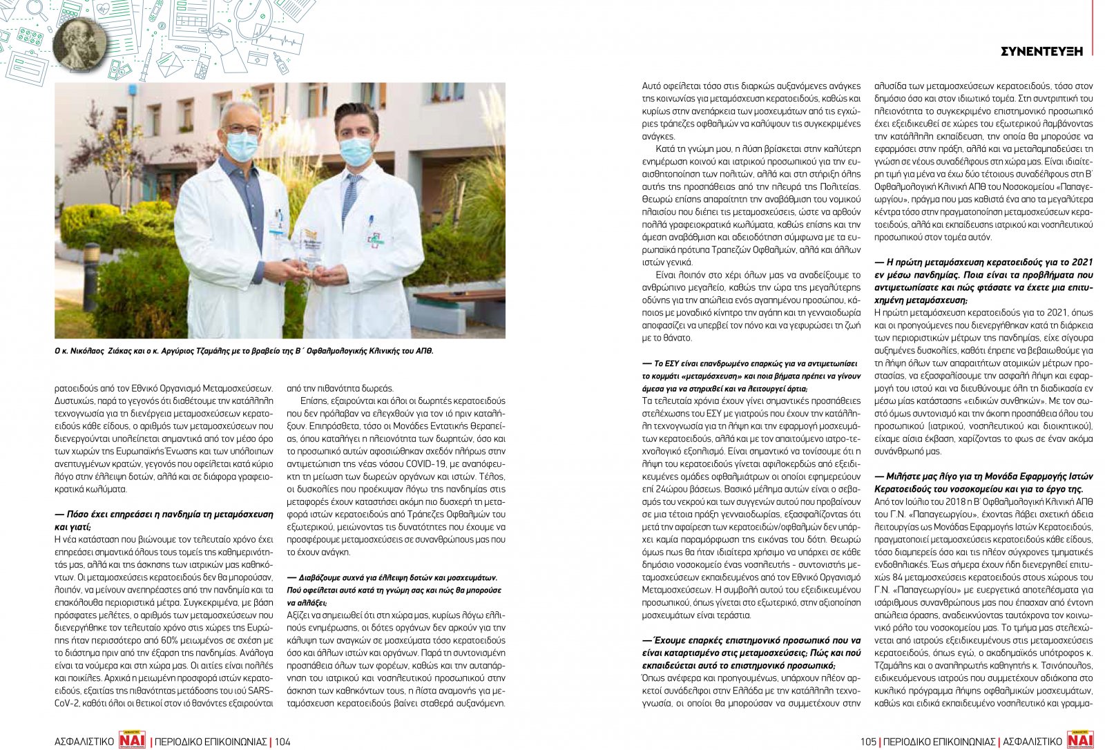 Για το ποια είναι η κατάσταση σήμερα στον τομέα των μεταμοσχεύσεων στη χώρα μας, καθώς και το κατά πόσον επηρέασε τη μεταμόσχευση η πανδημία, μας μιλά ο καθηγητής Νικόλαος Ζιάκας, διευθυντής της Β’ Οφθαλμολογικής Κλινικής Αριστοτελείου Πανεπιστημίου Θεσσαλονίκης και διευθυντής της Μονάδας Μεταμόσχευσης Ιστών Κερατοειδούς του ΓΝΘ «Παπαγεωργίου».