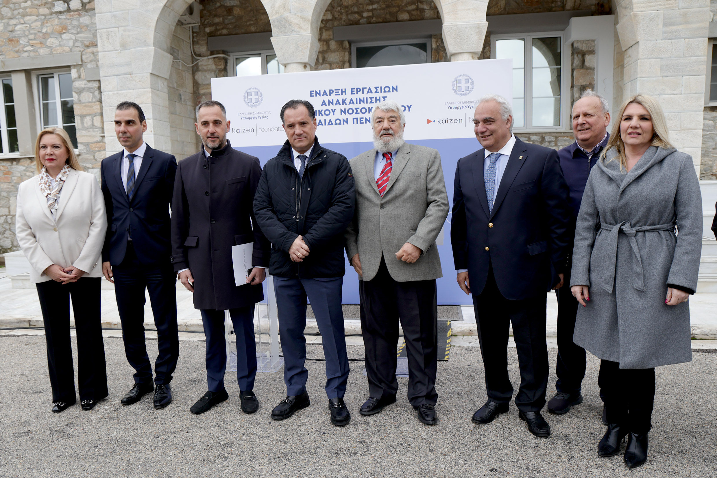 Ο Υπουργός Υγείας, Άδωνις Γεωργιάδης, η Αναπληρώτρια Υπουργός Ειρήνη Αγαπηδάκη και ο Υφυπουργός Μάριος Θεμιστοκλέους επισκέφτηκαν σήμερα, Τρίτη 27 Φεβρουαρίου, το Γενικό Νοσοκομείο Παίδων Πεντέλης με αφορμή την έναρξη των εργασιών ανακαίνισης των εγκαταστάσεων του Νοσοκομείου με χρηματοδότηση του κοινωφελούς οργανισμού «Kaizen Foundation».
