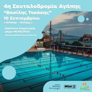 Ο Δήμος Πειραιά, ο Ο.Π.Α.Ν. και ο Όμιλος Εθελοντών κατά του καρκίνου «ΑγκαλιάΖΩ» για 4η συνεχή χρονιά, διοργανώνουν τη σκυταλοδρομία κολύμβησης «Βασίλης Τοκάκης», την Κυριακή 10 Σεπτεμβρίου, στο κολυμβητήριο «Ανδρέας Γαρύφαλλος», με σκοπό να φτιάξουμε όλοι μαζί και φέτος μια τεράστια αλυσίδα αγάπης. Η δράση που αποτελεί πλέον θεσμό για τον Πειραιά, πραγματοποιείται για 4η συνεχή χρονιά σε συνεργασία με τον Οργανισμό Πολιτισμού, Αθλητισμού και Νεολαίας Δήμου Πειραιά, τον Δήμο Πειραιά και τις Ημέρες Θάλασσας.