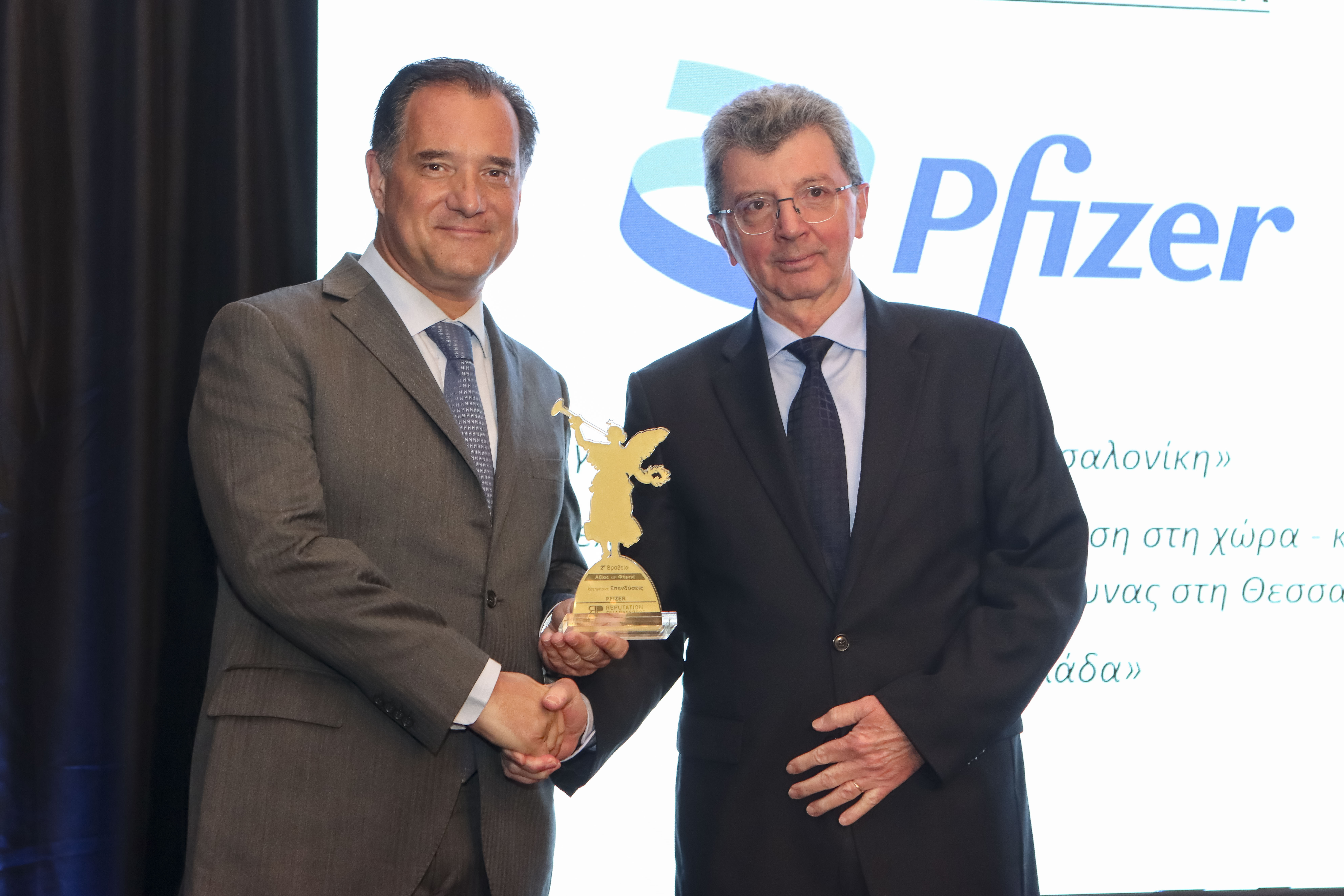 2ο βραβείο αξίας και φήμης απονεμήθηκε στην PFIZER στην κατηγορία Πολυεθνικές εταιρείες – Επενδύσεις στην Ελλάδα (διακρίνονται από αριστερά) Άδωνις Γεωργιάδης, Υπουργός Υγείας, Ζαχαρίας Ραγκούσης, Διευθύνων Σύμβουλος PFIZER, Νάντια Γκογκοζώτου, ΜΕ Πρόεδρος ΕΟΠΠΥ και Πρόεδρος Επιτροπής Διαπραγμάτευσης, Ευάγγελος Μανωλόπουλος, Πρόεδρος ΕΟΦ