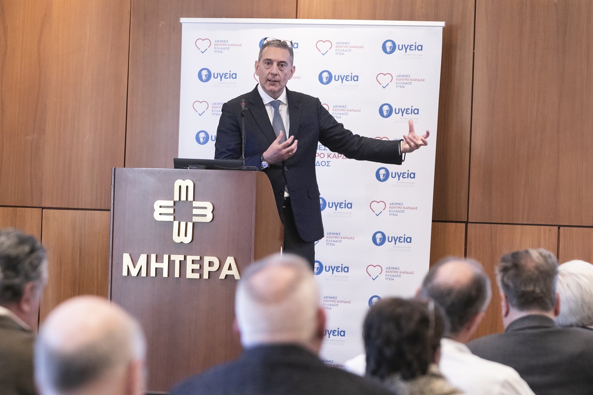Κεντρική φωτογραφία από αριστερά προς τα δεξιά: κ. Ανδρέας Καρταπάνης, Πρόεδρος & Διευθύνων Σύμβουλος του ΥΓΕΙΑ, κ. Θεόδωρος Κωφίδης, Καθηγητής Καρδιοχειρουργικής του Εθνικού Πανεπιστημιακού Νοσοκομείου της Σιγκαπούρης, κ. Πάνος Ε. Βάρδας Καρδιολόγος, Συντονιστής Τομέα Καρδιάς.