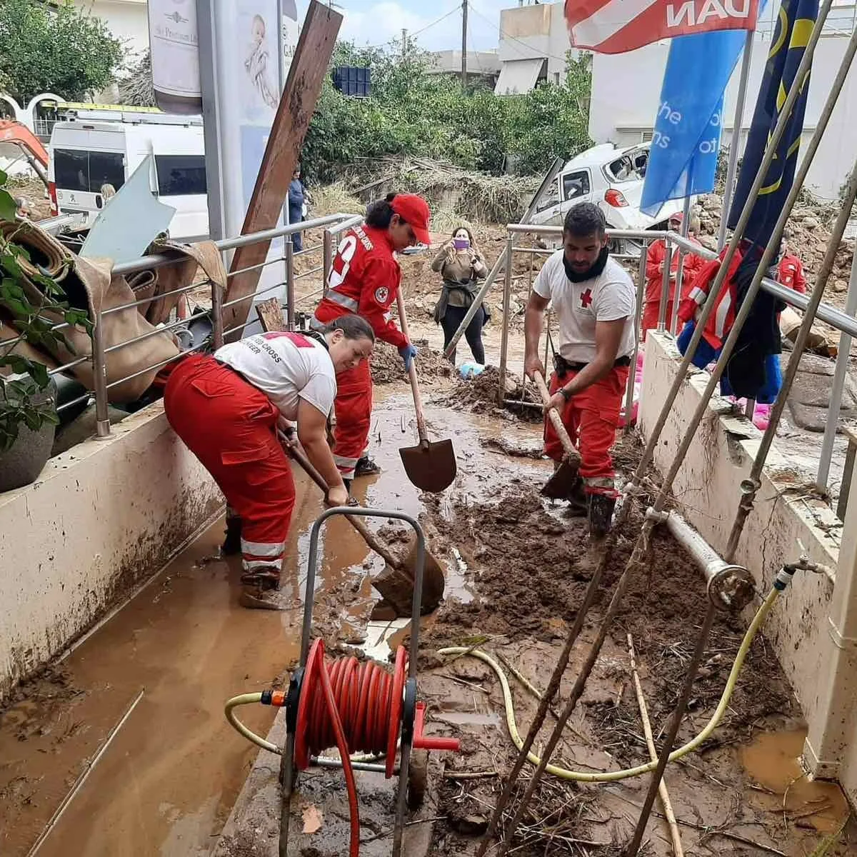 Συγκεκριμένα, εθελοντές Σαμαρείτες-Διασώστες από τα Περιφερειακά Τμήματα Ηρακλείου, Ρεθύμνου, Μοιρών, Χανίων και Αγίου Νικολάου του Ελληνικού Ερυθρού Σταυρού, βρισκόμενοι σε συνεχή επικοινωνία με την Πυροσβεστική και την Πολιτική Προστασία, μετέβησαν από τις πρώτες ώρες εκδήλωσης των ακραίων καιρικών φαινομένων στις πληγείσες περιοχές, ενισχύοντας τις προσπάθειες απάντλησης υδάτων και καθαρισμού του οδικού δικτύου, προσφέροντας παράλληλα Πρώτες Βοήθειες στους πολίτες αλλά και βοήθεια στις μετακινήσεις τους με τα διασωστικά οχήματα του Ε.Ε.Σ.