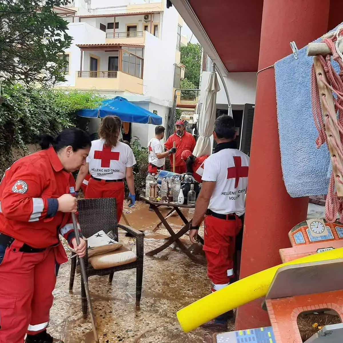 Οι εθελοντές του Ελληνικού Ερυθρού Σταυρού θα παραμείνουν στις πληγείσες περιοχές της Κρήτης για όσο χρειαστεί.