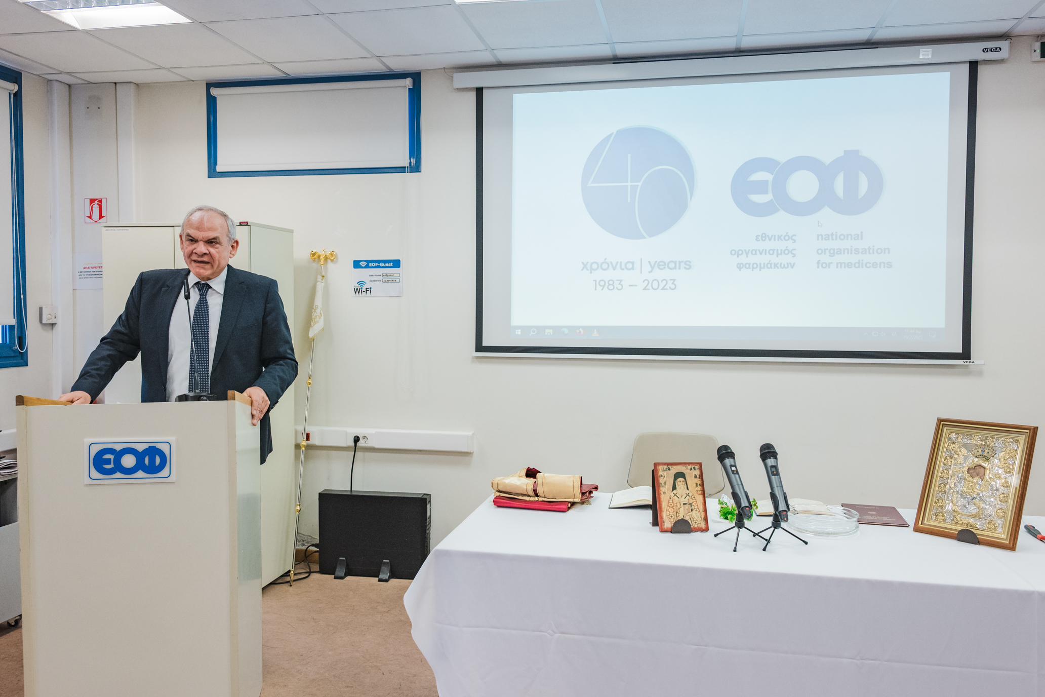 Ο Πρόεδρος εξέφρασε το σεβασμό του στους εργαζομένους του ΕΟΦ, χάρη στους οποίους επιτεύχθηκαν όλα τα παραπάνω, ενώ στη συνέχεια αναφέρθηκε στους μελλοντικούς στόχους του Οργανισμού, στους οποίους περιλαμβάνεται η επαρκής και ενεργή εκπροσώπηση σε φορείς και οργανισμούς της ΕΕ, η αναβίωση και ο εκσυγχρονισμός του Εθνικού Συνταγολογίου,  καθώς επίσης και η συνεργασία με τα Πανεπιστήμια και Ερευνητικά Κέντρα της χώρας μας και η συμμετοχή σε δίκτυα καινοτομίας (Health Hub).