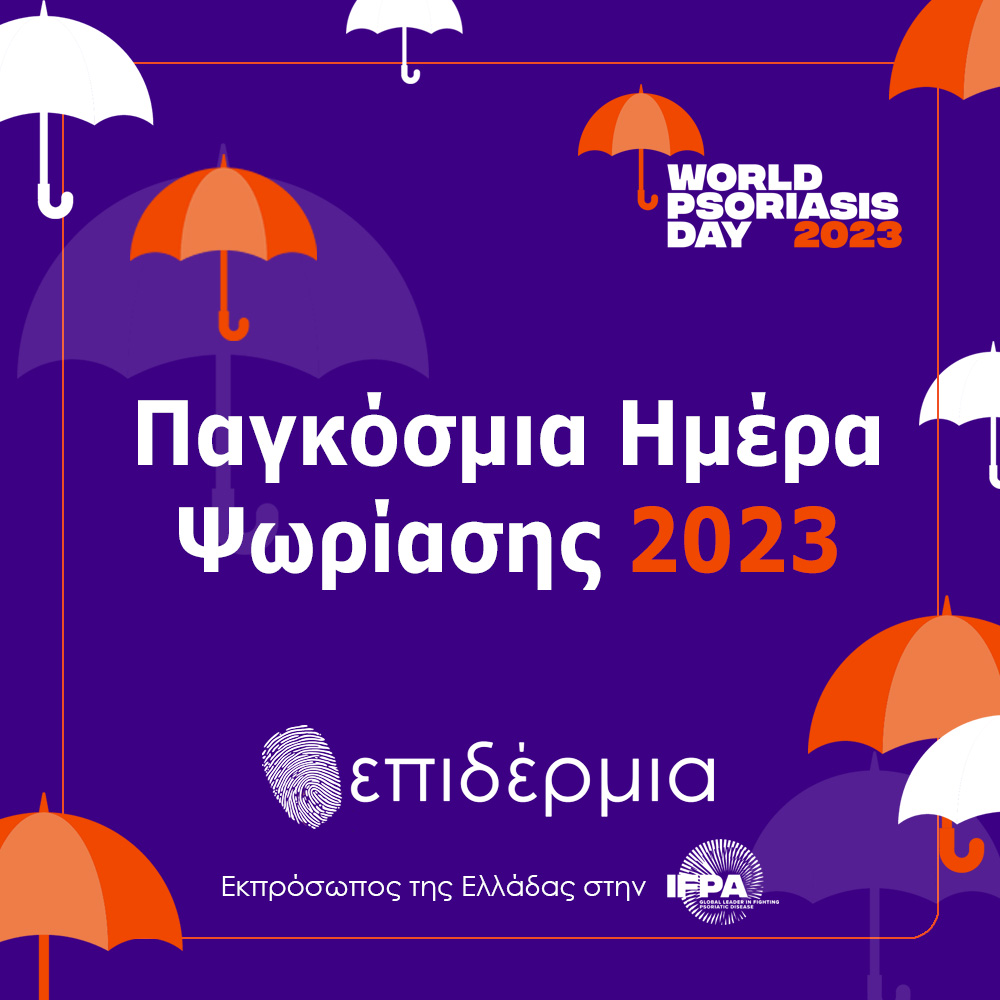 Συμμετέχοντας στη διεθνή αυτή προσπάθεια, ο Πανελλήνιος Σύλλογος Ασθενών με Ψωρίαση και Ψωριασική Αρθρίτιδα «Επιδέρμια», διοργανώνει τη Δευτέρα 30 Οκτωβρίου 2023, δράση ενημέρωσης και ευαισθητοποίησης κοινού στο κέντρο της Αθήνας. Εκείνη την ημέρα, μέλη του συλλόγου θα βρίσκονται στη συμβολή των οδών Ερμού και Νίκης στο Σύνταγμα και θα διανέμουν στους διερχόμενους έντυπο που μεταφέρει το μήνυμα της φετινής Παγκόσμιας Ημέρας Ψωρίασης. Επιπλέον, θα καλούν τους επισκέπτες να απαντήσουν σε 4 απλές ερωτήσεις, ως ενέργεια διερεύνησης της αντίληψης του κοινού για την Ψωριασική Νόσο. Ειδικότερα, οι απαντήσεις θα αξιοποιηθούν για την εκτίμηση του βαθμού στον οποίο η ελληνική κοινωνία είναι ενήμερη και ευαισθητοποιημένη για την Ψωρίαση και την επίπτωσή της, ενώ θα αναρτηθούν και στα social media του Συλλόγου «Επιδέρμια».