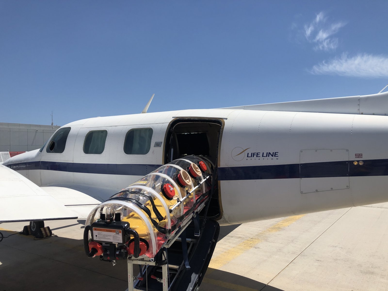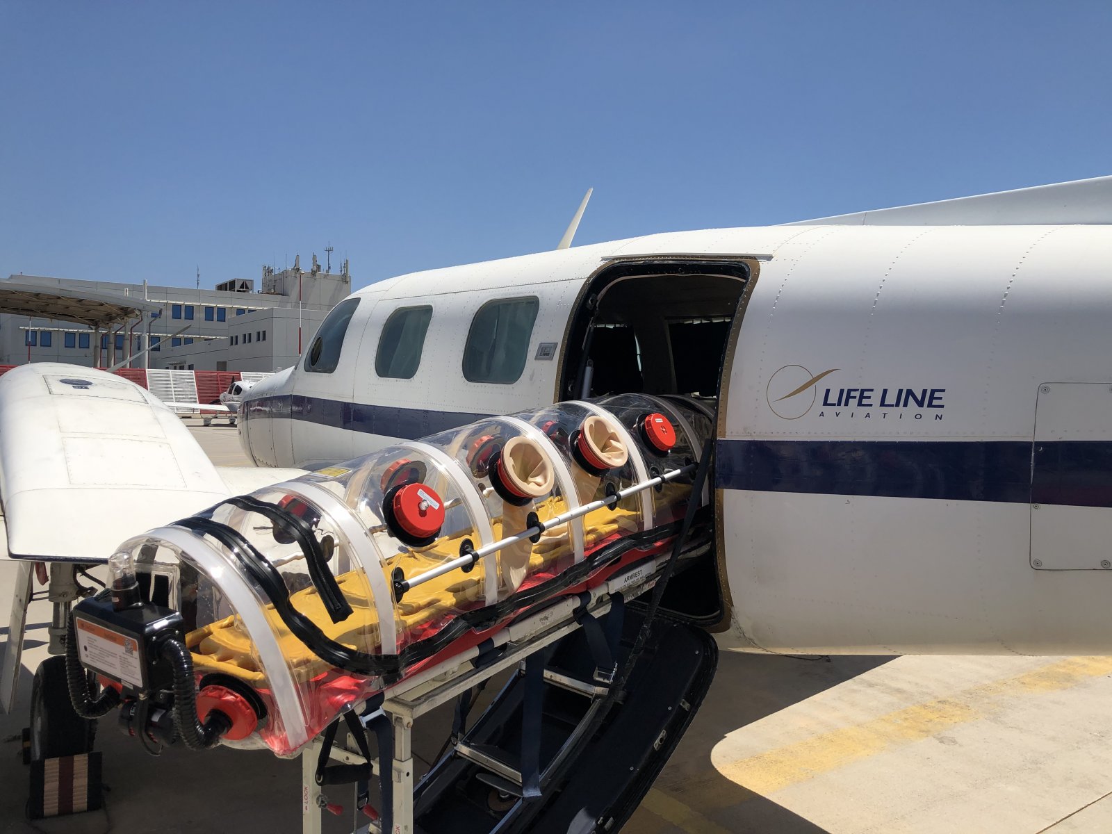 Η αεροπορική εταιρία Greek Flying Doctors στην προσπάθειά της να εξοπλίζεται πάντα με σύγχρονα ιατρικά μηχανήματα που προσφέρουν την μέγιστη ασφάλεια τόσο για το ιατρικό προσωπικό της όσο και για τους ασθενείς, προέβει στην αγορά κάψουλας μεταφοράς ασθενών με Covid-19.