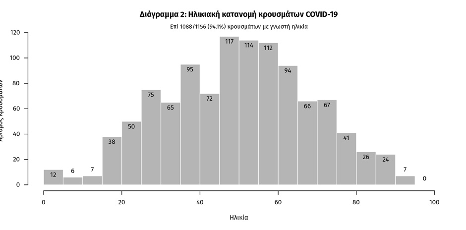 Σύμφωνα με τα αναθεωρημένα στοιχεία της έκθεσης του ΕΟΔΥ με τα ευρήματα από την επιδημιολογική επιτήρηση της νόσου από το νέο κορωνοϊό (Covid-19) στην Ελλάδα, οι άνθρωποι ηλικίας από 40 έως 64 ετών γίνονται συχνότερα στόχοι του νέου ιού σε ποσοστό 47,2%, όπως και η ηλικιακή ομάδα από 18 έως 40 ετών σε ποσοστό 26,8%.