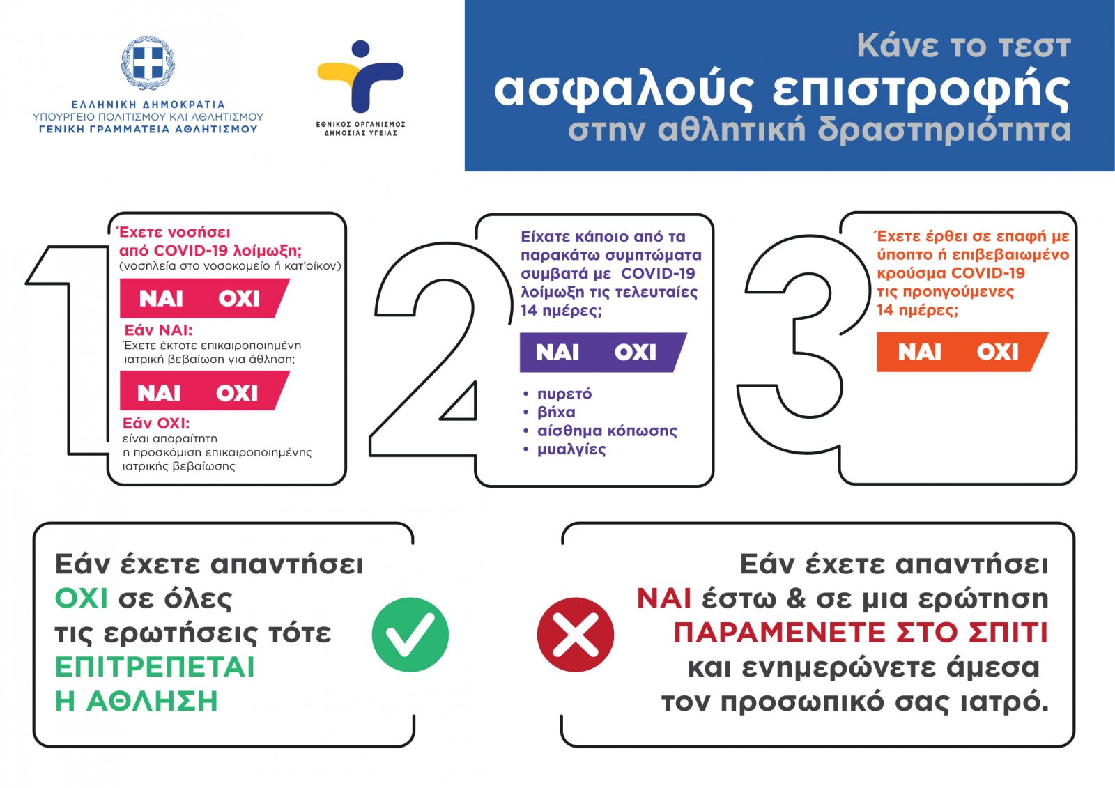 – οι συμπτωματικοί αθλητές επανέρχονται στην αθλητική δραστηριότητα εφόσον πληρούνται όλα τα παρακάτω