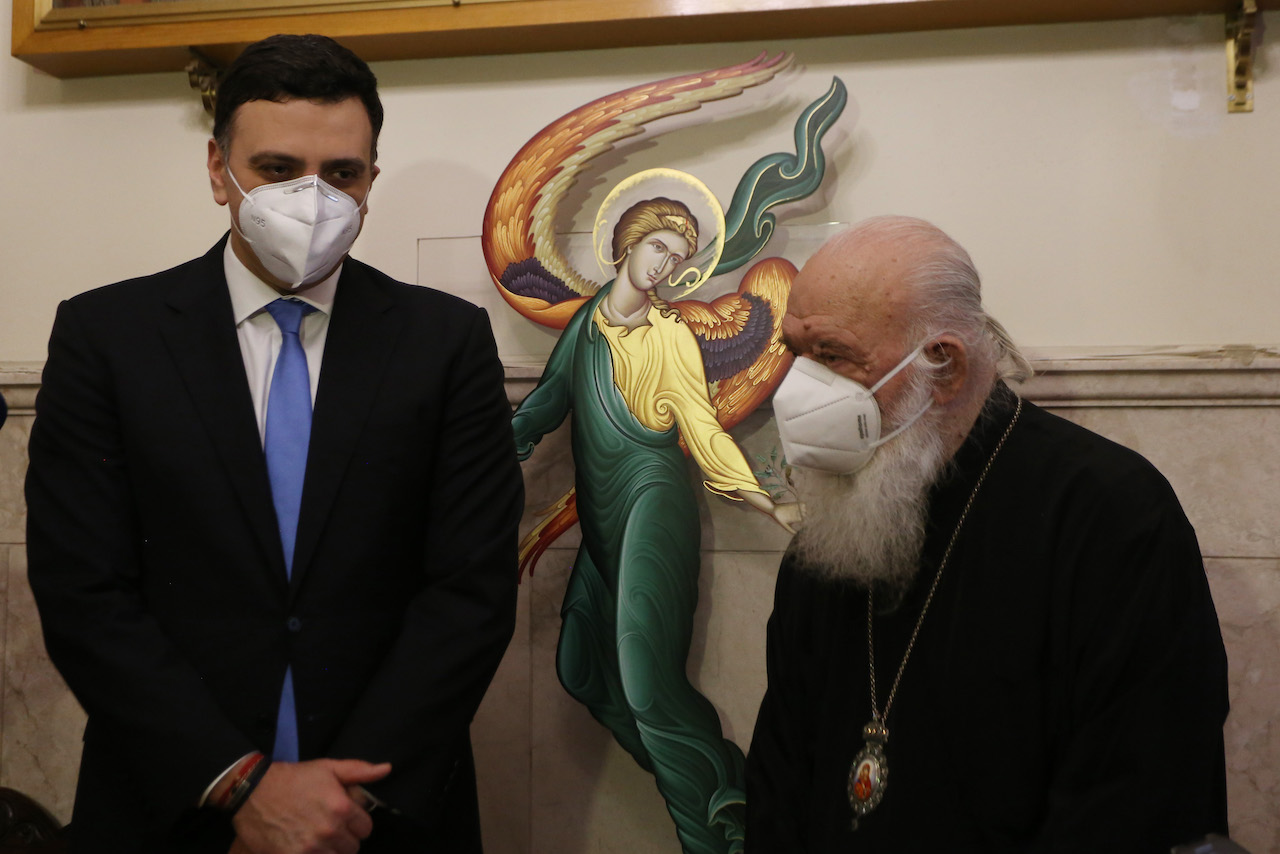 Β. ΚΙΚΙΛΙΑΣ: Θα ήθελα να ευχαριστήσω θερμά τον Μακαριώτατο που με υποδέχτηκε σήμερα στην Ιερά Αρχιεπισκοπή. Να ευχηθώ υγεία, ευημερία και να ζητήσω αυτές τις Άγιες μέρες, Μακαριώτατε, η Εκκλησία της Ελλάδος να συμπαρασταθεί στην οργανωμένη Πολιτεία, στην προσπάθεια η οποία γίνεται έτσι ώστε να μπορέσουμε να εμβολιάσουμε τους συμπολίτες μας, να τους φροντίσουμε.