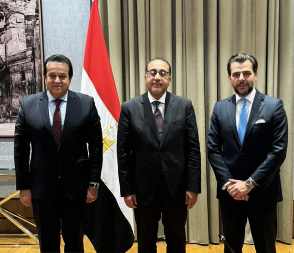 Κεντρική φωτογραφία: Ο Δρ. Βασίλης Αποστολόπουλος και ο κ. Γιώργος Ζέρδιλας με τον Πρωθυπουργό της Αιγύπτου, Δρ. Μουσταφά Μαντμπουλί και τον Υπουργό Υγείας και Πληθυσμού της Αιγύπου, Δρ. Χαλέντ Αμπντέλ Γκαφάρ.