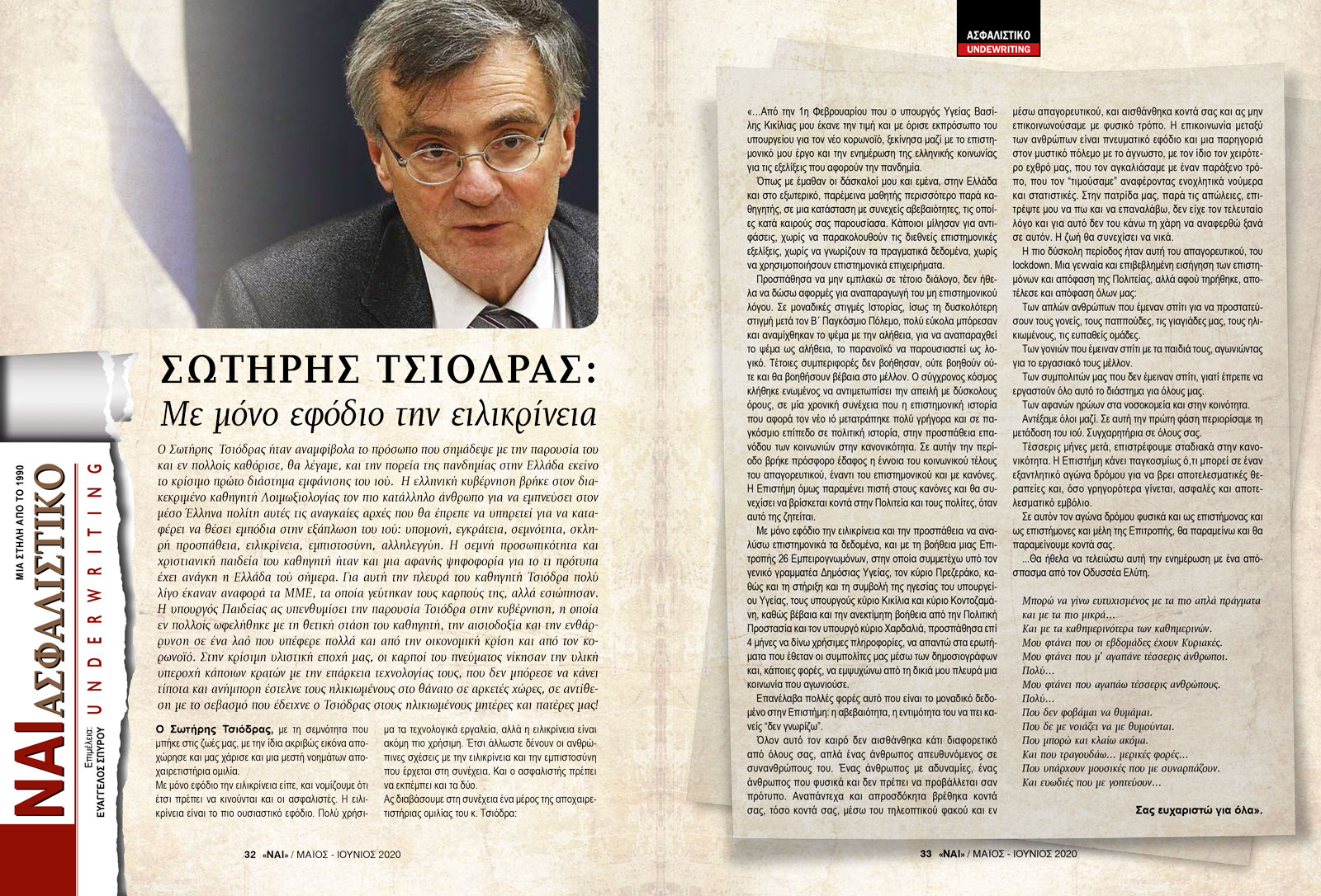 Διαβάστε στη συνέχεια ένα μέρος της αποχαιρετιστήριας ομιλίας του κ. Tσιόδρα, όπως δημοσιεύθηκε στο Ασφαλιστικό ΝΑΙ, τεύχος 184, Μάιος – Ιούνιος 2020 (πατήστε πάνω στην εικόνα για μεγέθυνση):