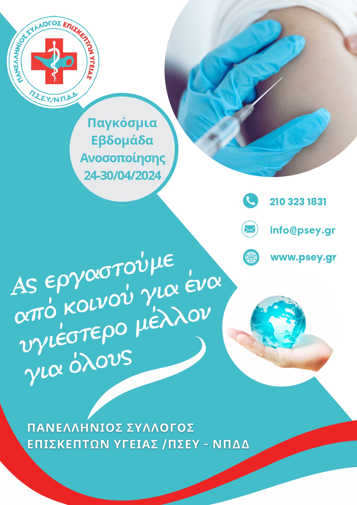 «Ο Πανελλήνιος Σύλλογος Επισκεπτών Υγείας ΝΠΔΔ, έχοντας ως αφετηρία την Παγκόσμια Εβδομάδα Ανοσοποίησης, συντάσσεται με το Υπουργείο Υγείας, την Εθνική Επιτροπή Εμβολιασμού της χώρας, τις κατευθυντήριες οδηγίες, εγκυκλίους και στόχους όπως τίθενται και από διεθνείς επιστημονικούς φορείς για την προαγωγή του εμβολιασμού και την μείωση της διστακτικότητας μέσω της ενημέρωσης και ευαισθητοποίησης όλου του πληθυσμού με έμφαση σε ομάδες υψηλού κινδύνου», αναφέρει η κα Δέσποινα Τοπάλη, Γενική Γραμματέας του Πανελλήνιου Συλλόγου Επισκεπτών Υγείας – ΝΠΔΔ