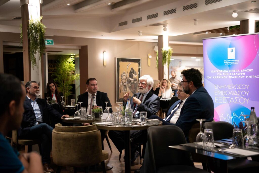 Παράλληλα, πραγματοποιήθηκε ειδική εκδήλωση στο Σύνταγμα, με στόχο την ενημέρωση όλων των εμπλεκόμενων φορέων και την προώθηση στοχευμένων πολιτικών και σχεδίων δράσης γύρω από το ζήτημα, παρουσία του υπουργού Υγείας κυρίου Μιχάλη Χρυσοχοΐδη, ο οποίος στον χαιρετισμό του τόνισε: «Οφείλουμε να ευαισθητοποιήσουμε όλους τους πολίτες, δεδομένου ότι οι περισσότεροι δεν γνωρίζουν ότι ο καρκίνος του τραχήλου της μήτρας είναι ο δεύτερος πιο συχνός καρκίνος στις νέες γυναίκες 15 έως 44 ετών, επομένως η περαιτέρω ενημέρωση οδηγεί σε μεγαλύτερη πρόληψη. Ως υπουργείο έχουμε προχωρήσει στις απαραίτητες ενέργειες για την υλοποίηση ενός σχεδίου δράσης έως το 2030 για την εξάλειψη του καρκίνου του τραχήλου της μήτρας».