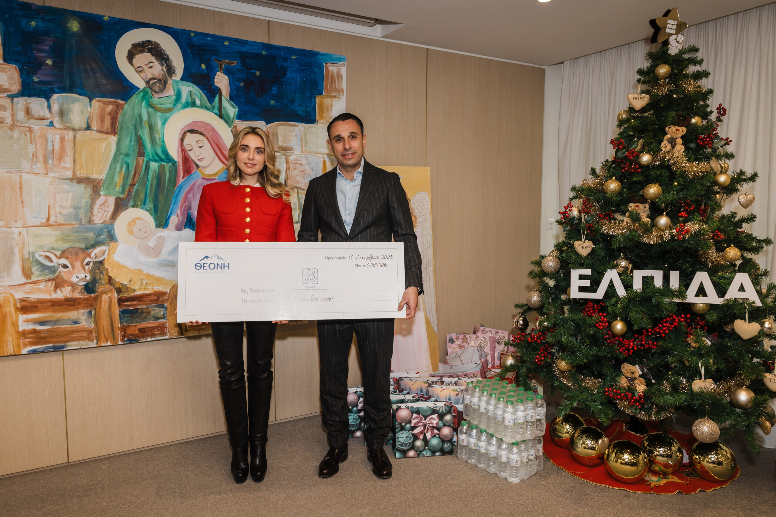 Στην εκδήλωση, το Φυσικό Μεταλλικό Νερό ΘΕΟΝΗ προσέφερε ένα χρηματικό ποσό ως δωρεά για τη στήριξη του Κοινωνικού Ταμείου της ΕΛΠΙΔΑΣ μαζί με δώρα για όλα παιδιά, μια συμβολική κίνηση με την οποία τα νερά ΘΕΟΝΗ εντάσσονται στην μεγάλη αλυσίδα αγάπης και στήριξης του Σωματείου. Παρών στην εκδήλωση ήταν ο Πρόεδρος και Διευθύνων Σύμβουλος της εταιρείας κύριος Δημήτρης Τσέλιος ο οποίος δεσμεύτηκε ότι θα συνεχίσει να στέκεται στο πλευρό της ΕΛΠΙΔΑΣ.