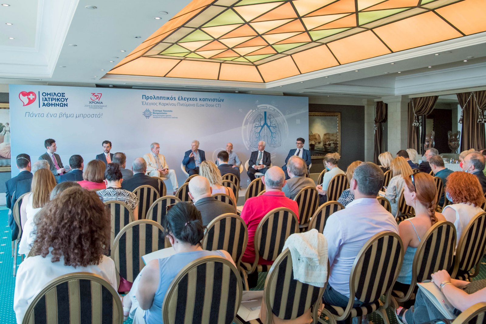 Οι καταξιωμένοι ιατροί-επιστήμονες, εστίασαν στην καινοτομία και στα διεθνή best practices που εφαρμόζονται για την πρόληψη του καρκίνου του πνεύμονα, μέσω της πρωτοποριακής εξέτασης αξονικής τομογραφίας θώρακα, χαμηλής ακτινοβολίας, αναδεικνύοντας, για ακόμη μία φορά τη σημαντικότητα της πρόληψης και της έγκαιρης διάγνωσης.