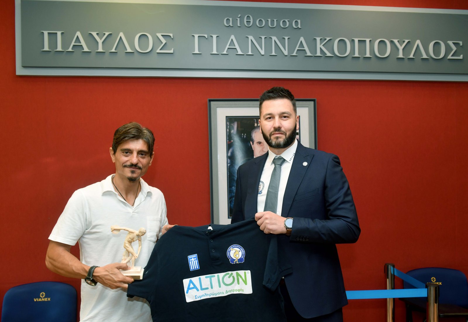 (από δεξιά προς αριστερά) κ. Δημήτρης Γιαννακόπουλος, Πρόεδρος Δ.Σ. και Διευθύνων Σύμβουλος του Ομίλου ΒΙΑΝΕΞ, κ. Γιώργος Τζατζάκης – Πρόεδρος Αθλητικής Ένωσης Αστυνομικών Ελλάδος