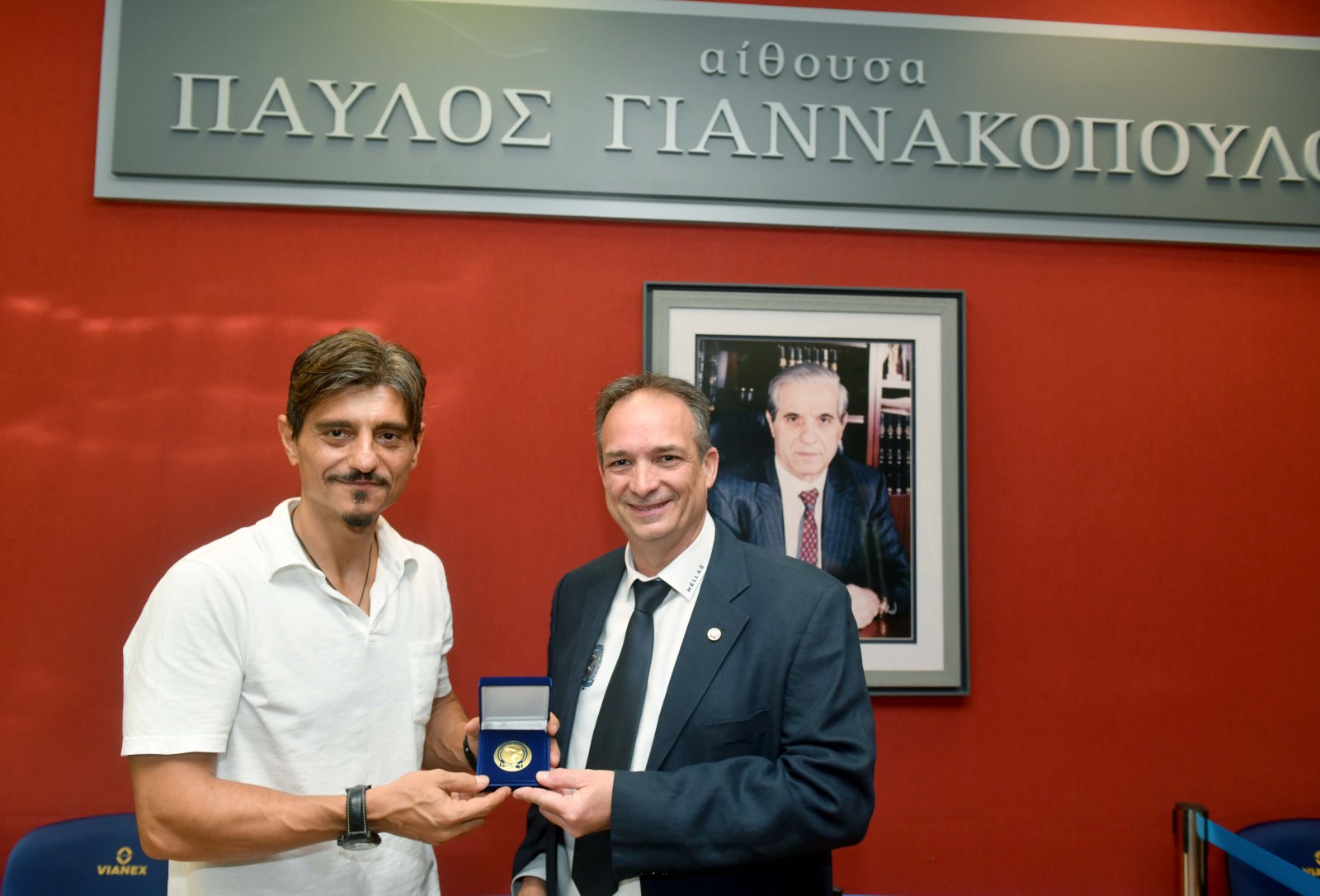(από δεξιά προς αριστερά) κ. Δημήτρης Γιαννακόπουλος, Πρόεδρος Δ.Σ. και Διευθύνων Σύμβουλος του Ομίλου ΒΙΑΝΕΞ, κ. Δημήτρης Καστανιώτης – Β Αντιπρόεδρος Αθλητικής Ένωσης Αστυνομικών Ελλάδος