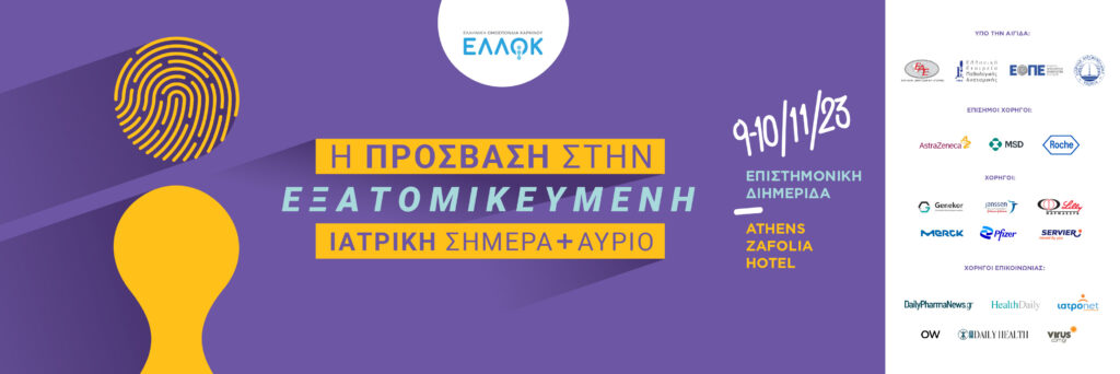 Η Ελληνική Ομοσπονδία Καρκίνου – ΕΛΛΟΚ διοργανώνει επιστημονική διημερίδα για την εξατομικευμένη ιατρική με τίτλο “Η πρόσβαση στην εξατομικευμένη ιατρική σήμερα και αύριο”, η οποία πραγματοποιείται