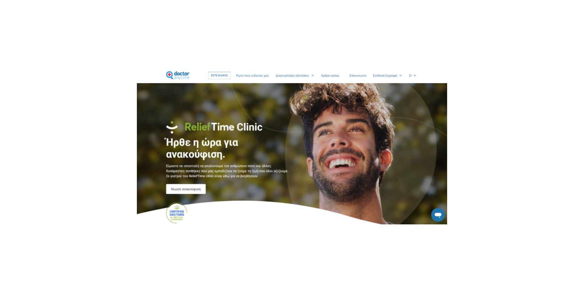 Σκοπός της δημιουργίας της ReliefTime Clinic είναι να δώσει άμεση και εγγυημένη ανακούφιση σε χιλιάδες ανθρώπους που υποφέρουν από συμπτώματα όπως ο πόνος, η δυσφορία