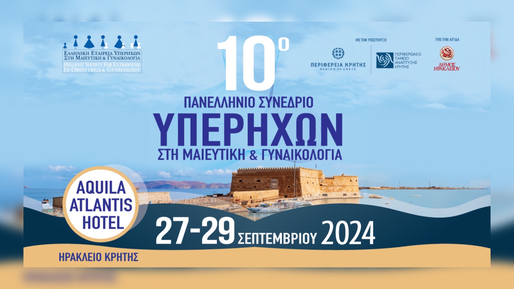 Η Ελληνική Εταιρεία Υπερήχων στη Μαιευτική & Γυναικολογική (Ε.Ε.Υ.Μ.Γ.), διοργανώνει το 10ο Πανελλήνιο Συνέδριο Υπερήχων στη Μαιευτική και Γυναικολογία, με την υποστήριξη της Περιφέρειας Κρήτης,