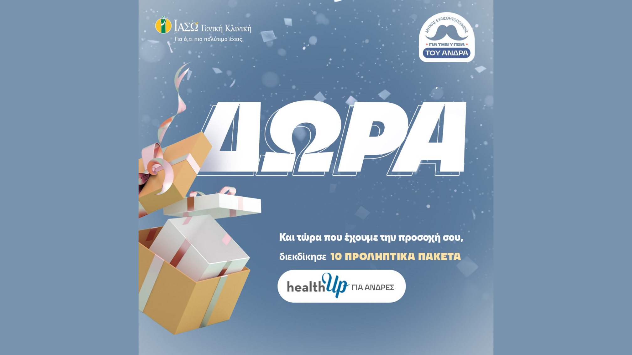 Η Γενική Κλινική του ΙΑΣΩ προσφέρει δέκα προληπτικούς ελέγχους healthUp για άνδρες στο υπερσύγχρονο τμήμα Check-up, μέσω διαγωνισμού στη σελίδα της στο Instagram. Το ΙΑΣΩ