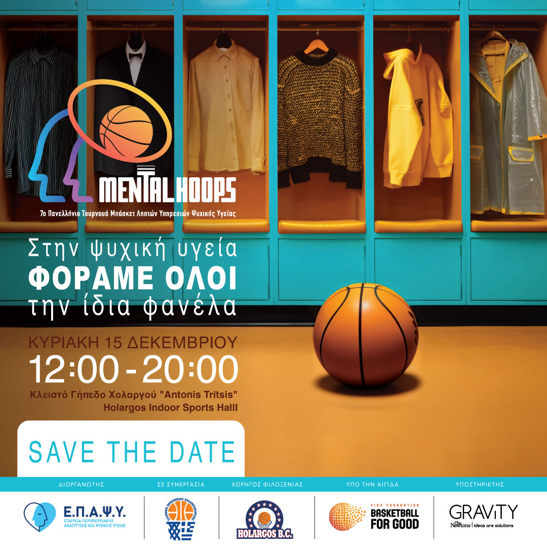 Η Εταιρεία Περιφερειακής Ανάπτυξης και Ψυχικής Υγείας (ΕΠΑΨΥ) διοργανώνει το 7ο Πανελλήνιο Τουρνουά Μπάσκετ “Mental Hoops”, την Κυριακή 15 Δεκεμβρίου 2024 και ώρα 12:00-20:00, στο