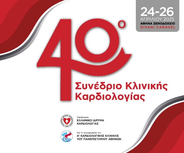 40ο Συνέδριο Κλινικής Καρδιολογίας | 24 – 26 Απριλίου 2025 Αθήνα, Ξενοδοχείο Caravel