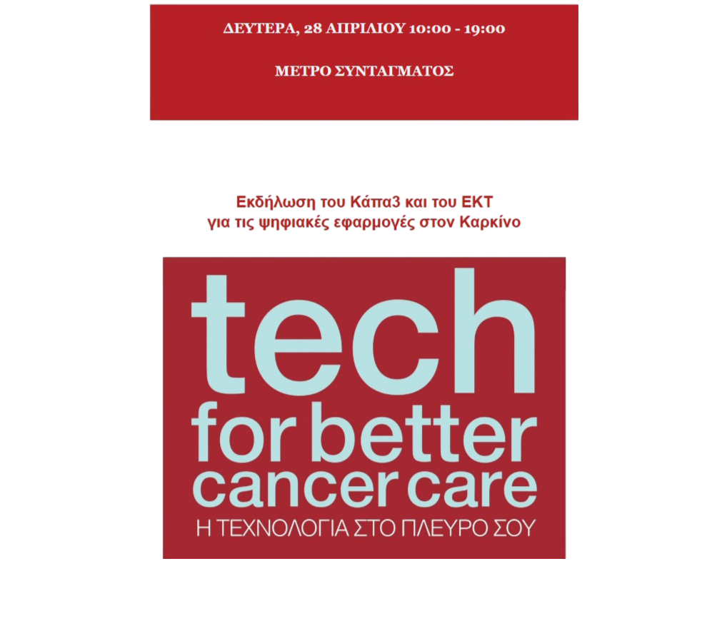 Εκδήλωση του Κέντρου Καθοδήγησης Καρκινοπαθών και του ΕΚΤ για τις ψηφιακές εφαρμογές στον Καρκίνο!