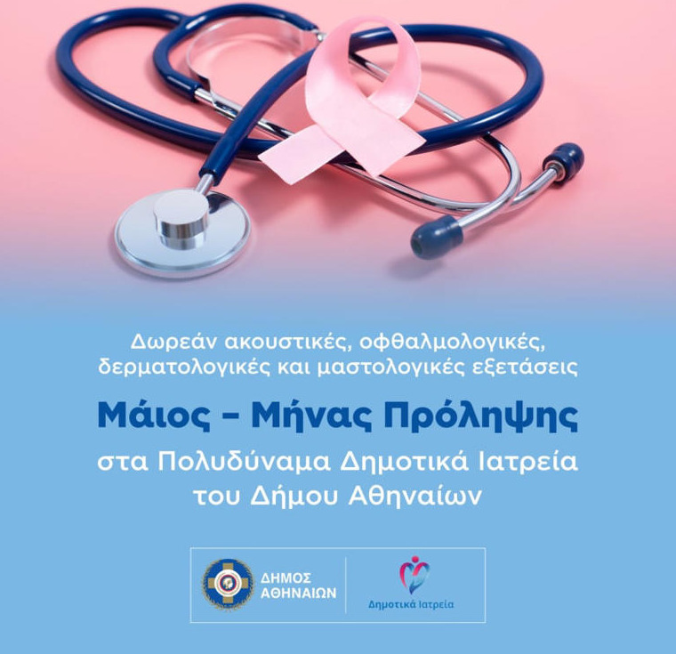 Του Άρη Μπερζοβίτη Ο Μάιος αναδεικνύεται σε μήνα πρόληψης για τον Δήμο Αθηναίων, με σειρά δωρεάν εξετάσεων και δράσεων που οργανώνει το Τμήμα Προληπτικής Ιατρικής του Δήμου με